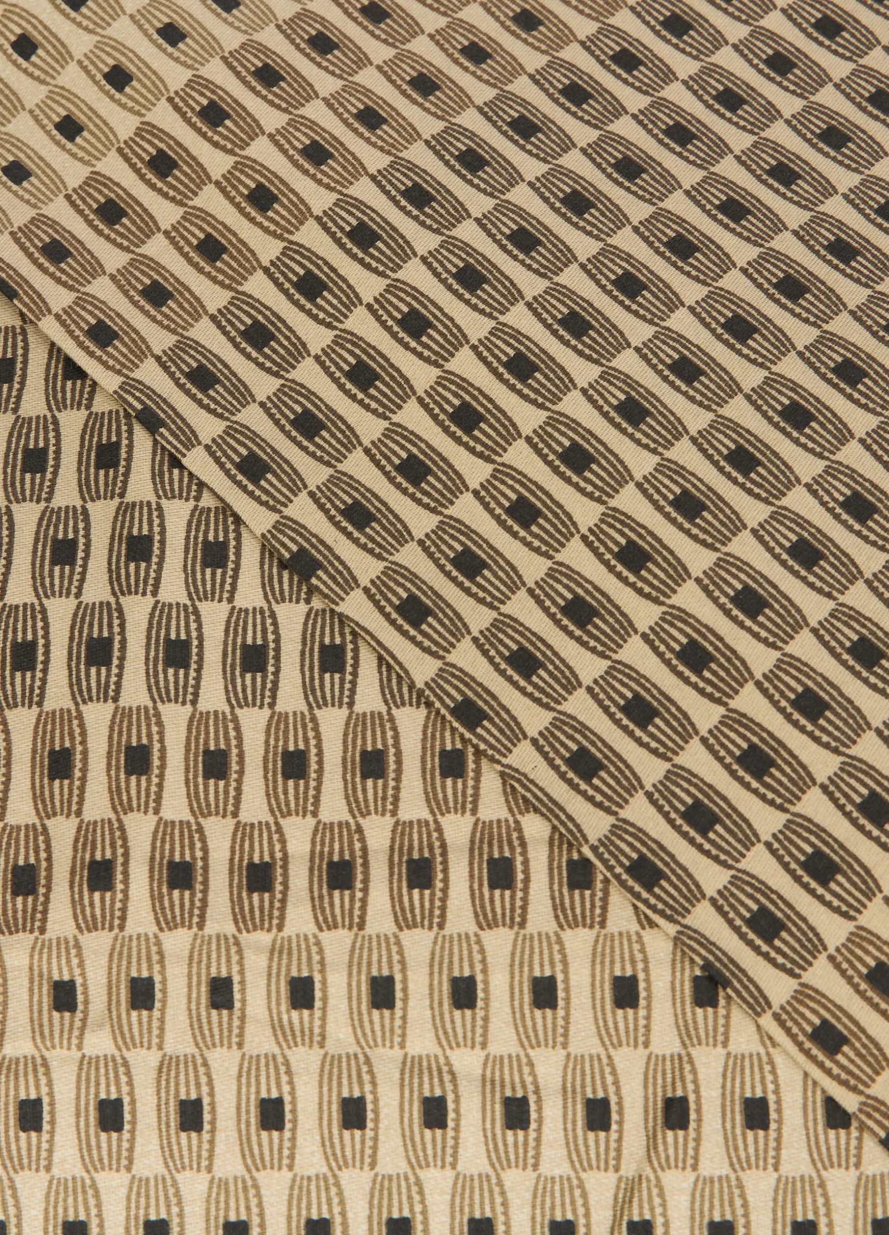 Parure con lenzuolo a due piazze e federe coordinate in raso di puro cotone: il tessuto confortevole e leggero è arricchito da una stampa all-over con motivo di ispirazione anni Settanta in bianco, nero e beige. Composta da lenzuolo 280 x 240 cm e due federe 50 x 80 cm.