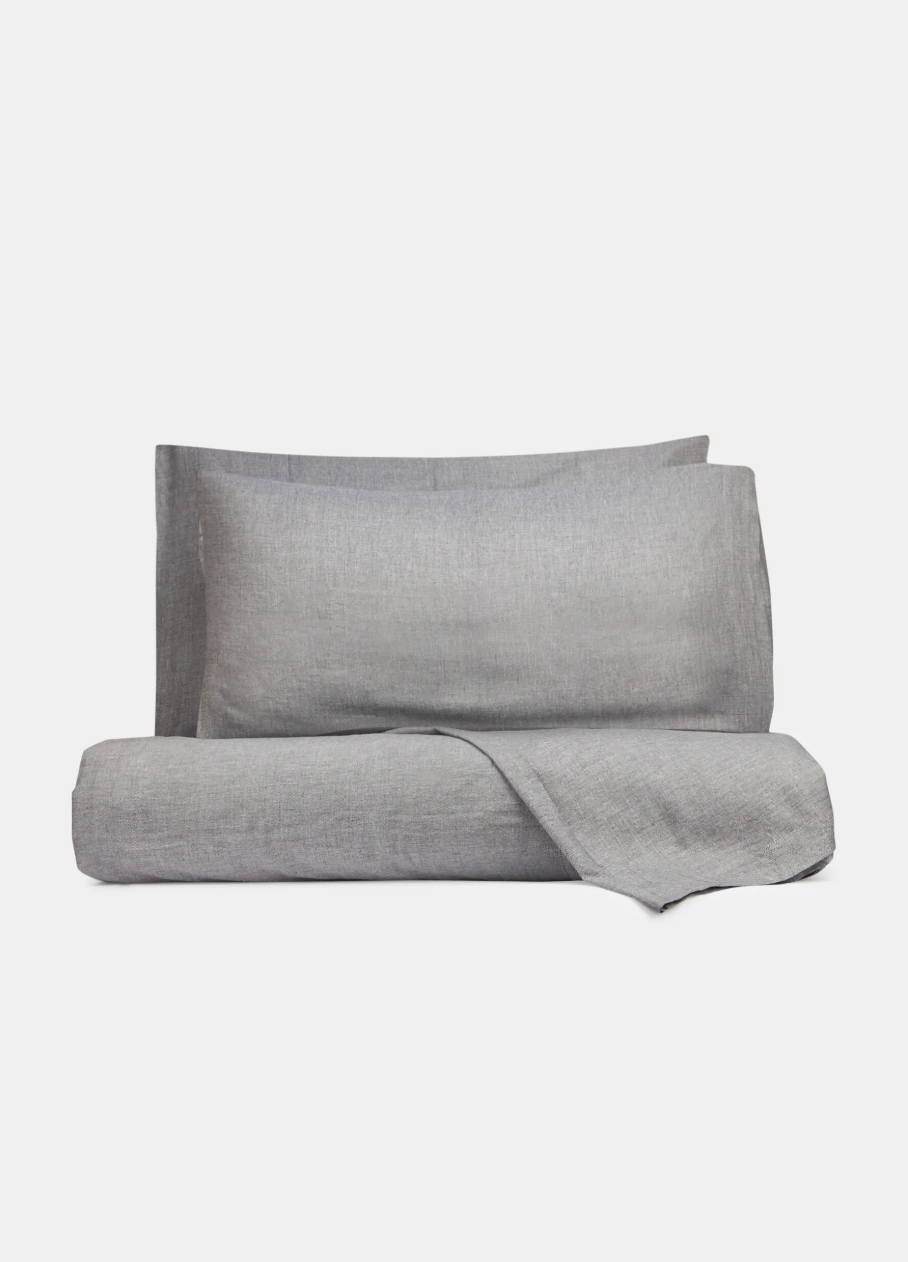 Parure coordinata con lenzuolo matrimoniale e federe in puro cotone, un materiale leggero e fresco che garantisce un riposo ottimale. Il tessuto è tinto filo e presenta un caratteristico motivo a lisca di pesce che crea un effetto sfumato. Composta da lenzuolo 280 x 240 cm e due federe 50 x 80 cm.