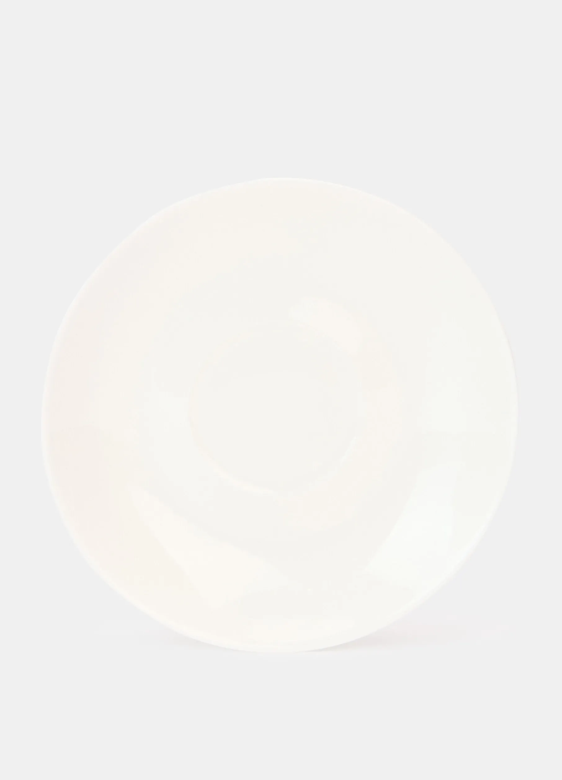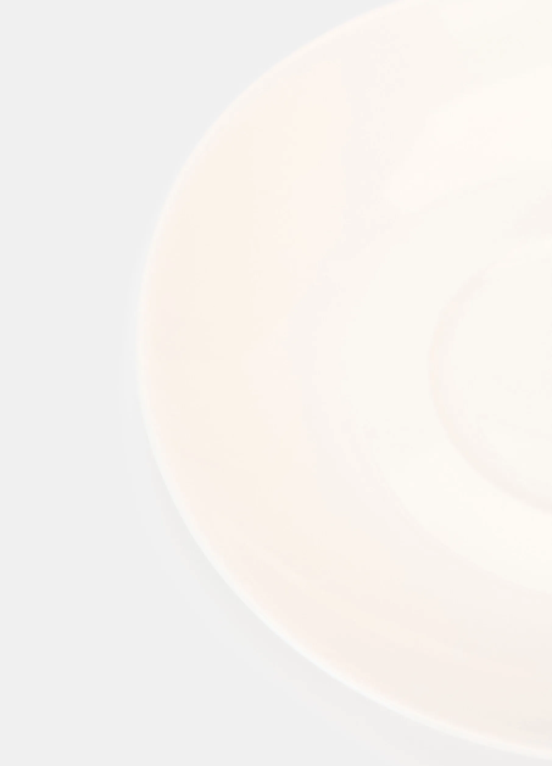 Piattino piccolo, abbinato alla tazza da tè, in ceramica bianco avorio, dalla superficie liscia e lucida. Il look semplice ed essenziale lo rende perfetto per la tavola di tutti i giorni.