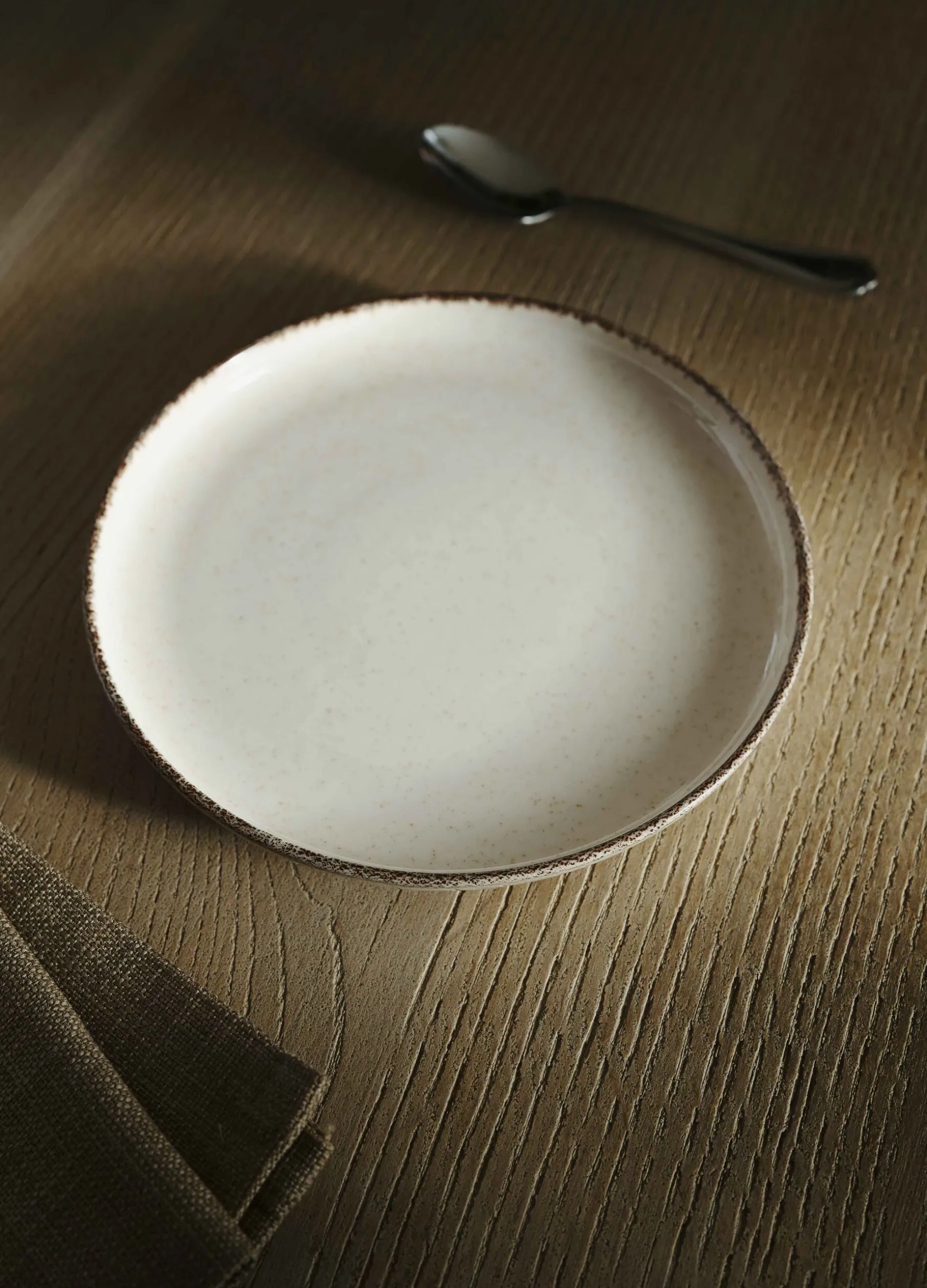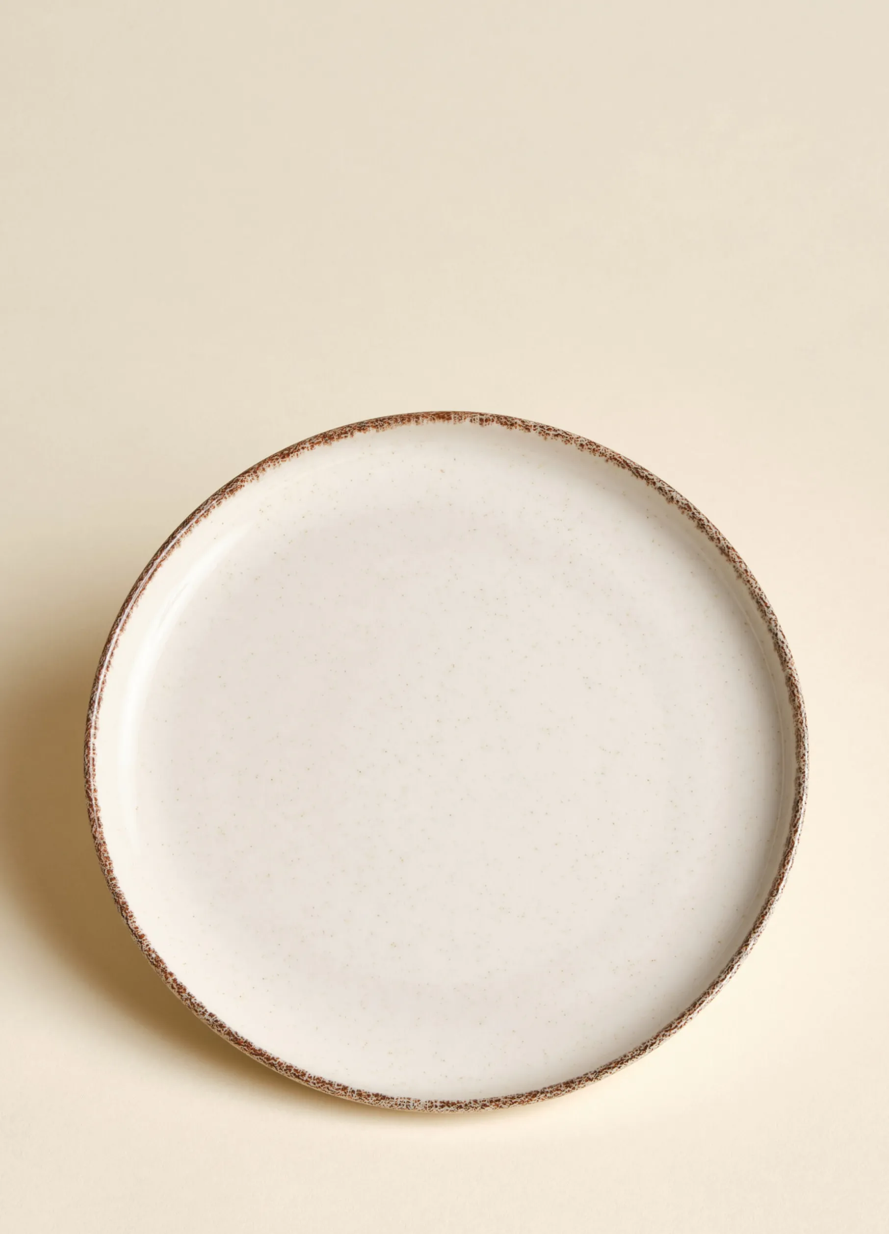Piatto frutta in porcellana puntinata con bordo a contrasto. Diametro 19 cm.