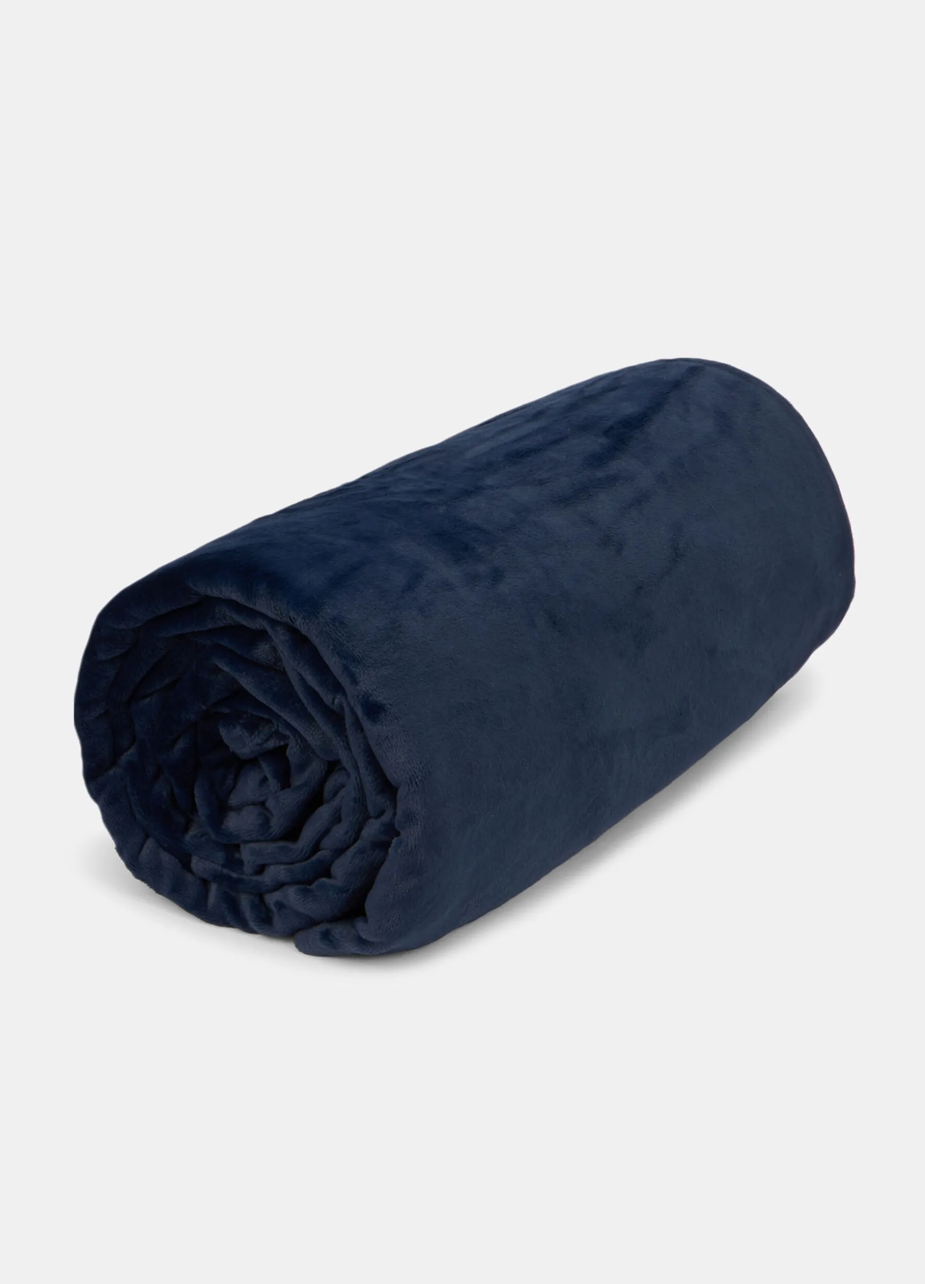 Plaid o coperta a due piazze per letto matrimoniale declinato in tessuto effetto peluche blu scuro, un materiale caldo e avvolgente che garantisce comfort e riposo. Dimensioni: 250 x 210 cm.