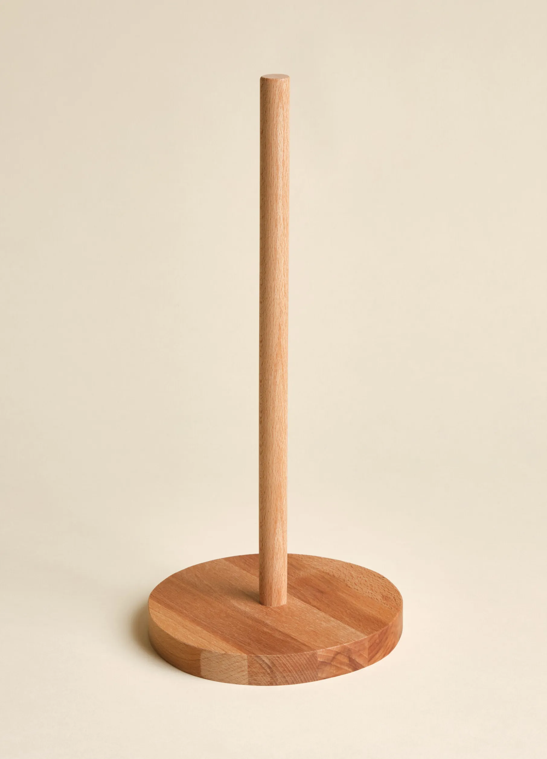Porta rotolo in legno di faggio massello con base rotonda. Made in Italy. Altezza 34cm.