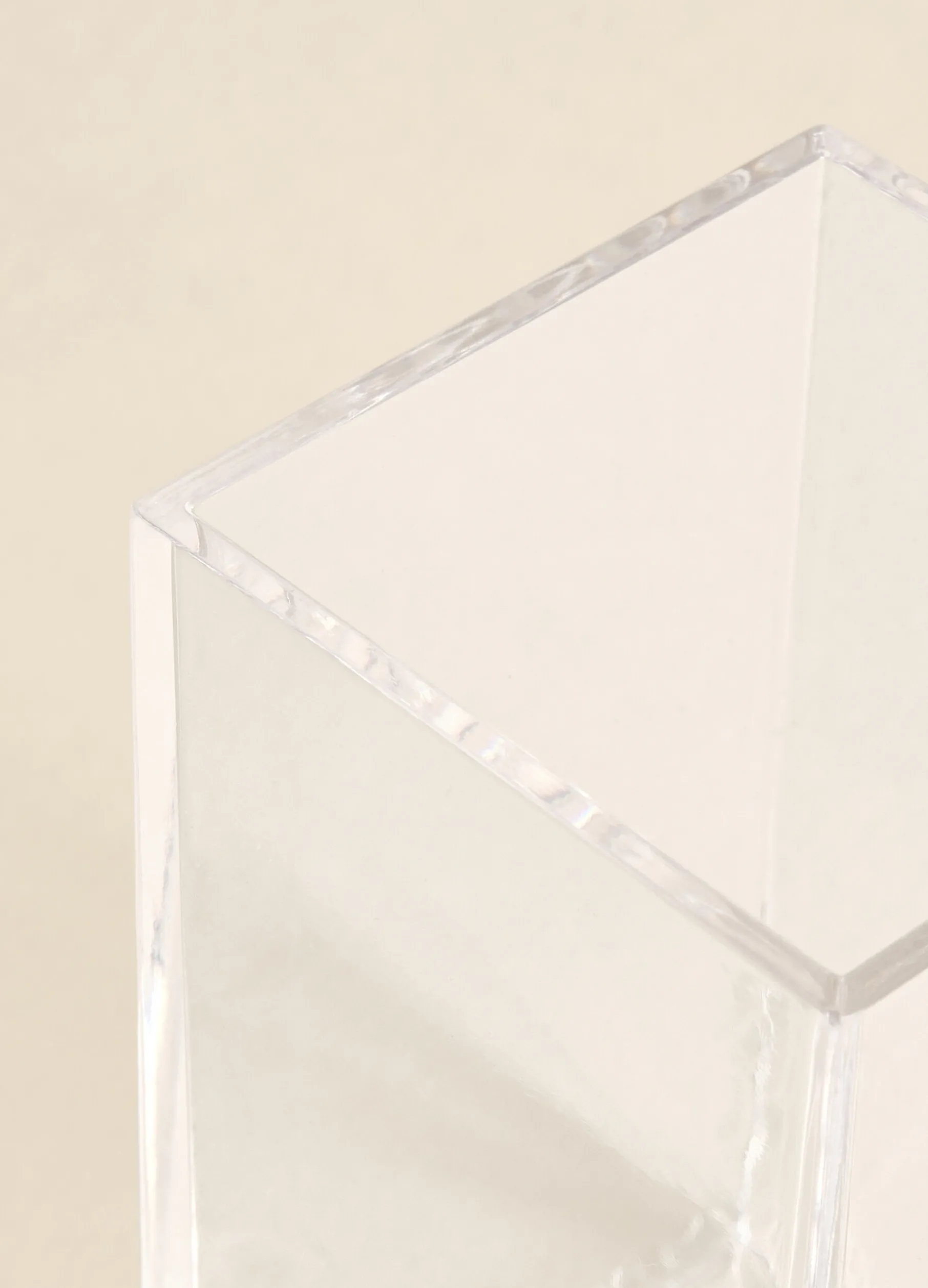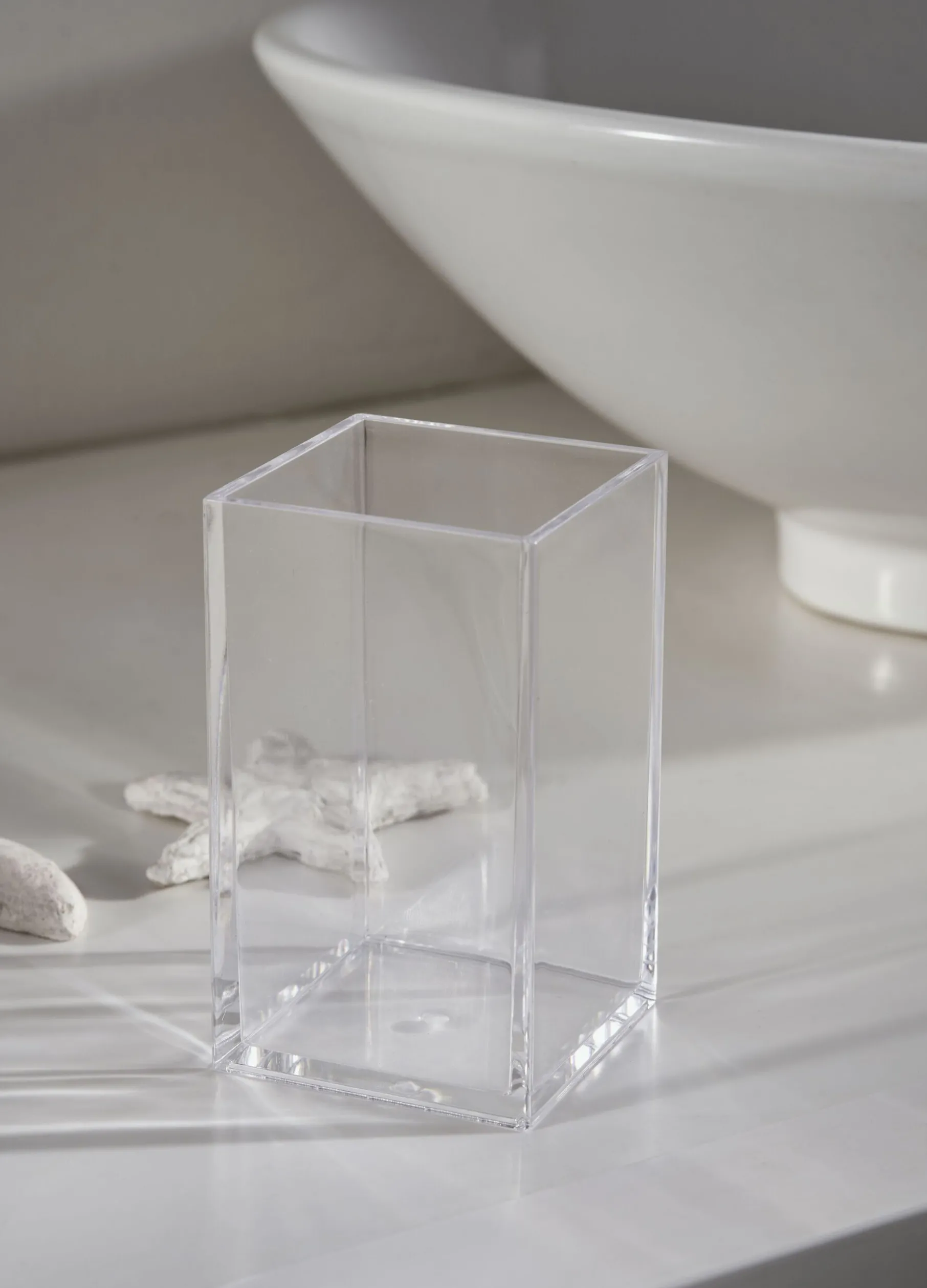 Porta spazzolino squadrato in plastica. Dimensioni 14×6,5×6,5cm.
