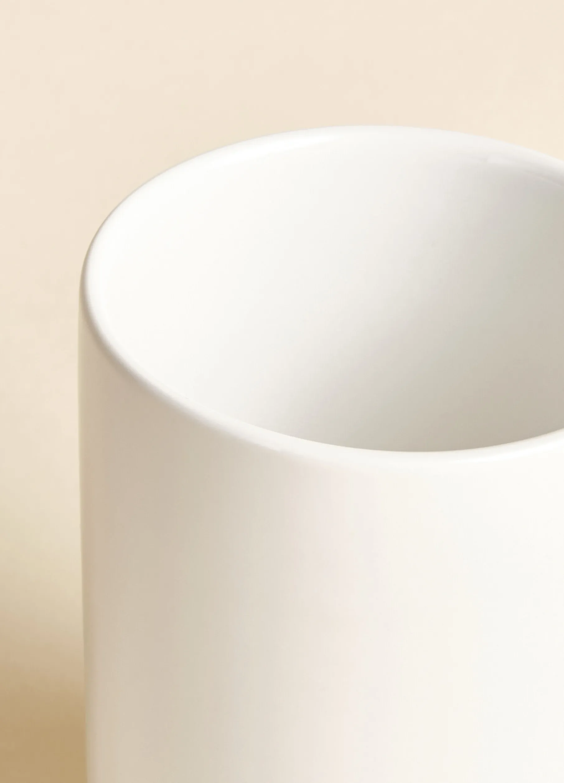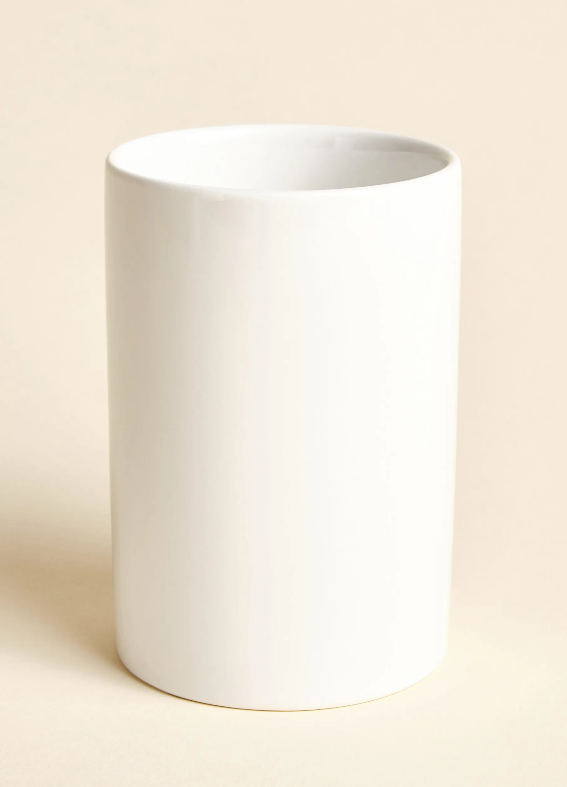 Portaspazzolino da bagno Sarah in stoneware bianco. Dimensioni 11 diametro 7 cm.