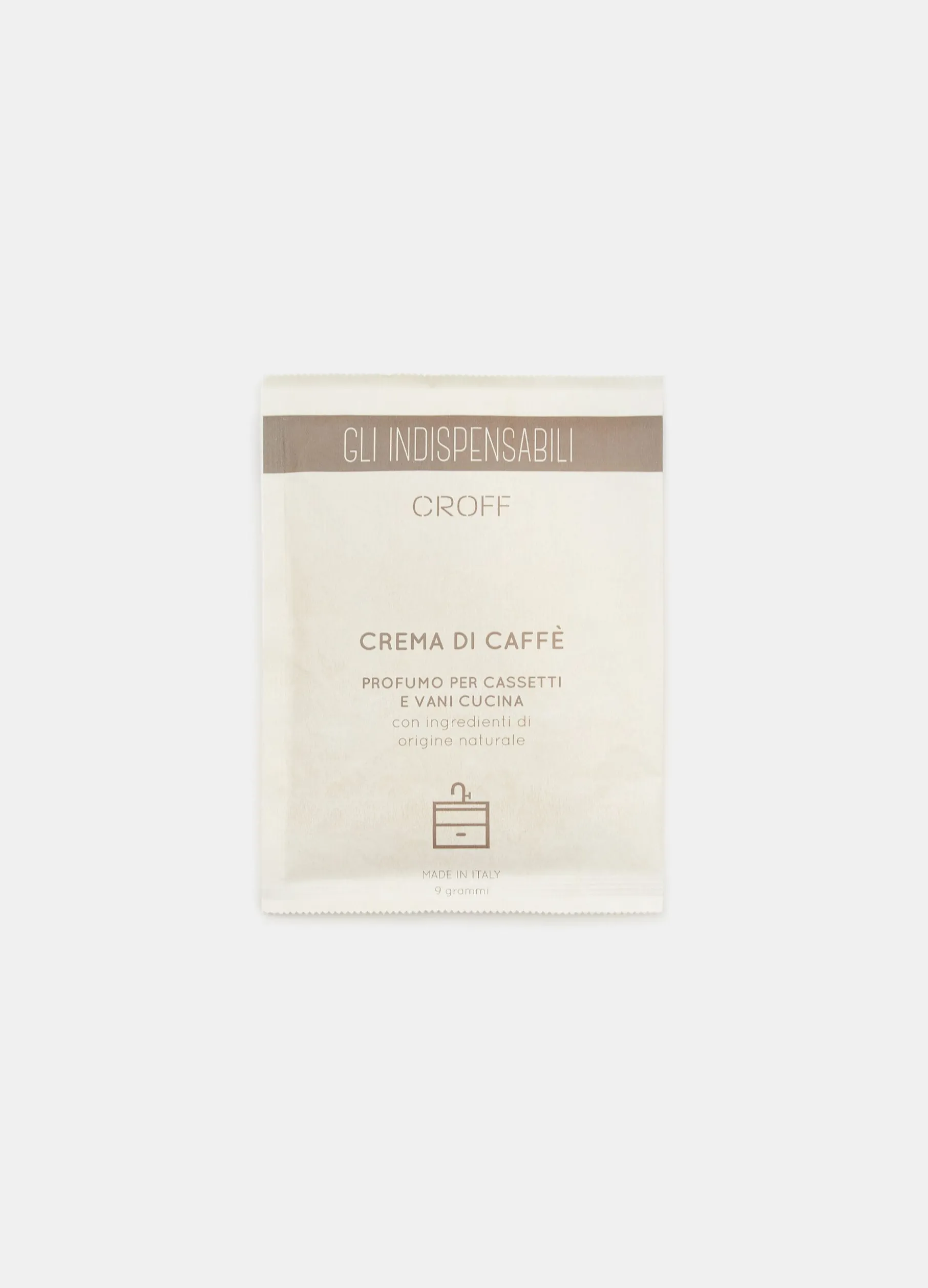 Profumo in busta per cassetti e vani cucina. Crema di caffè, ingredienti naturali. Indispensabili Wellness. Made in Italy.