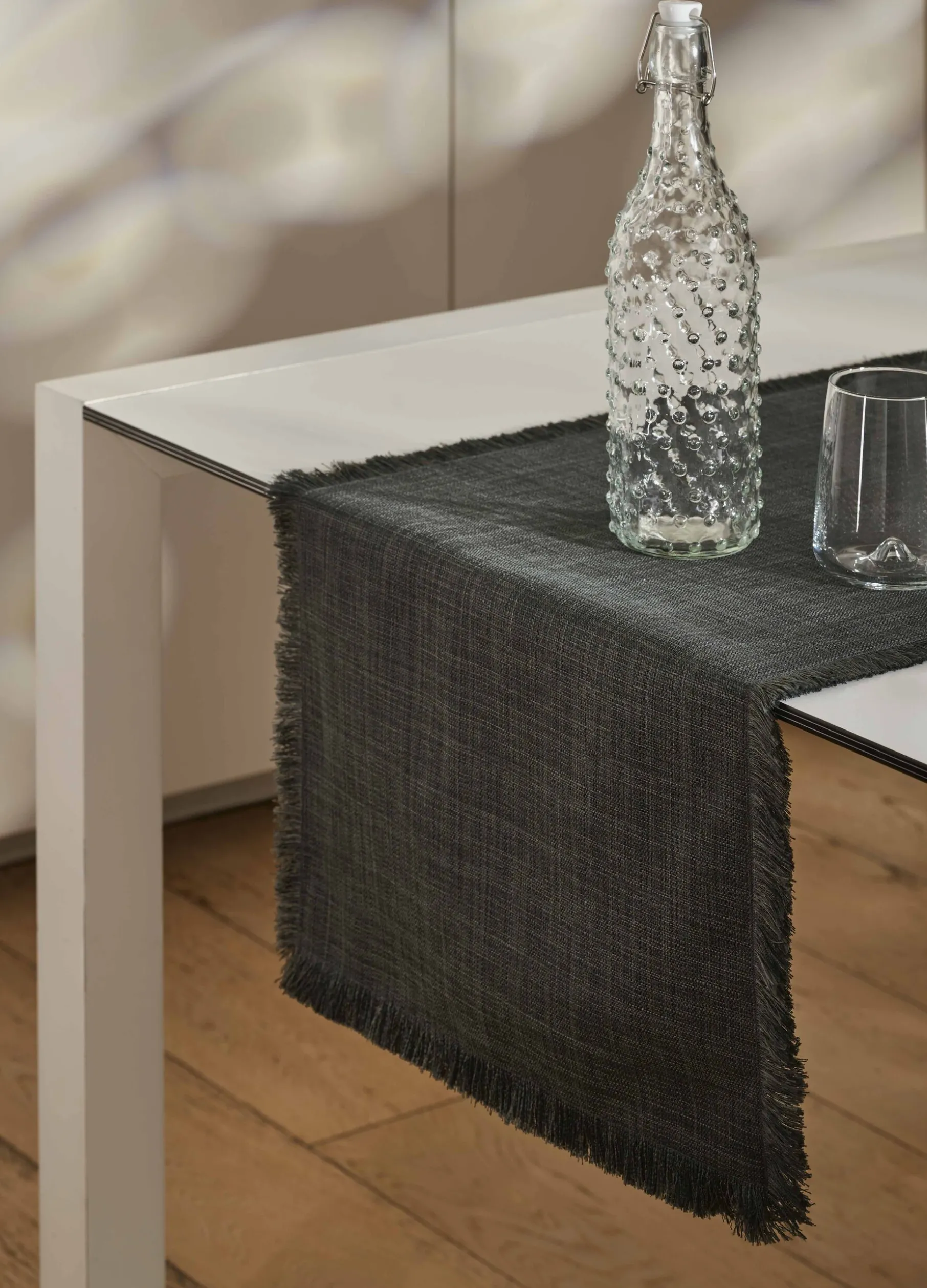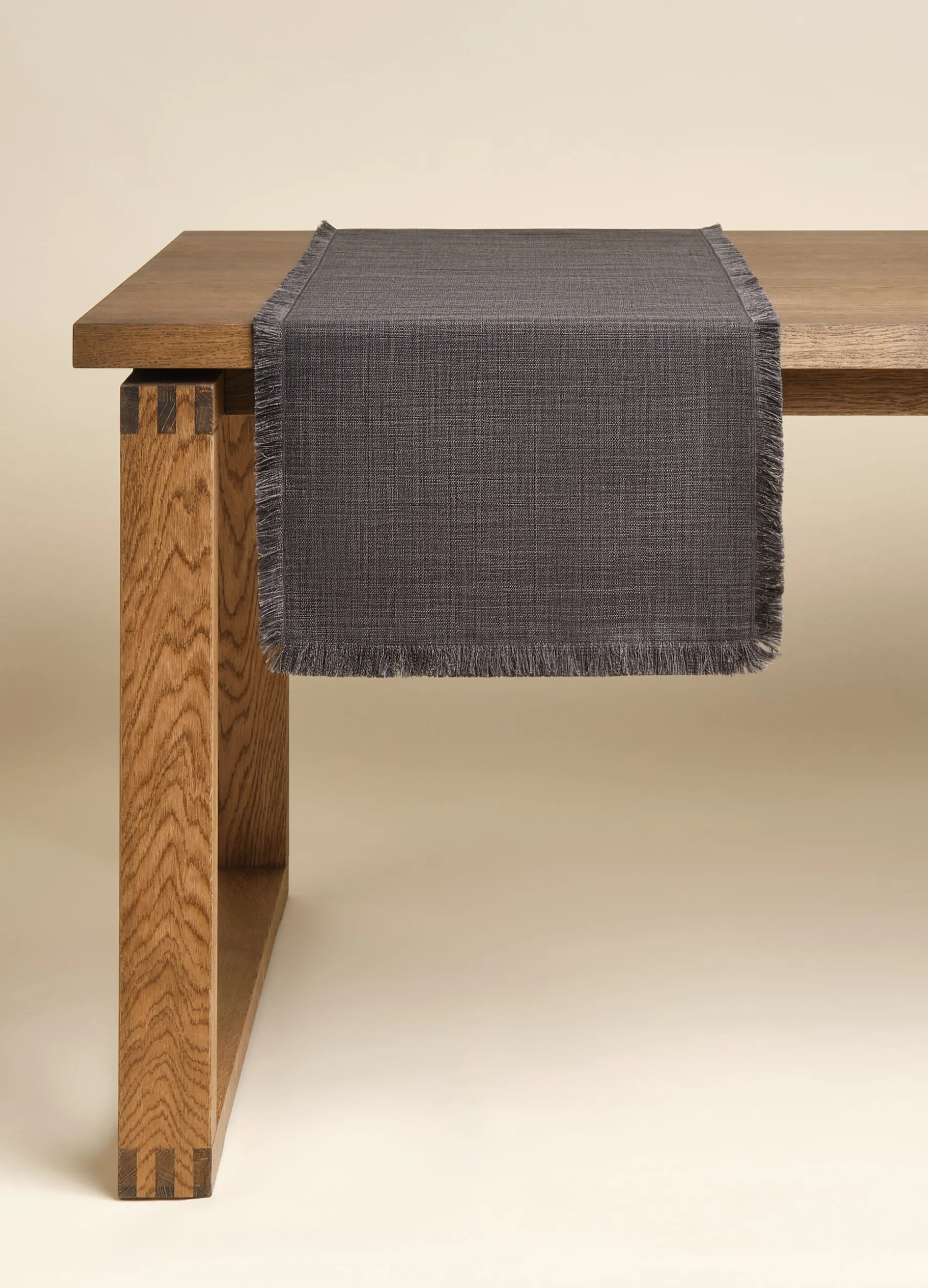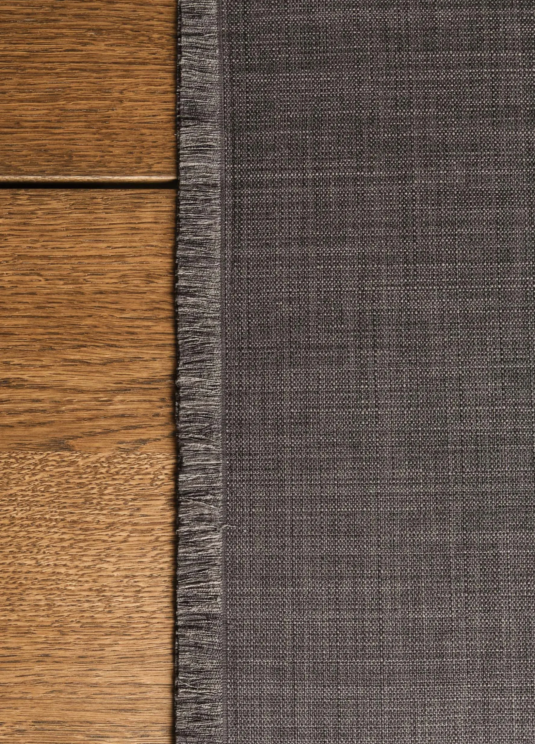 Runner 140×40 cm effetto lino sfrangiato ai lati. Tinta unita. Tessuto idrorepellente e antimacchia.