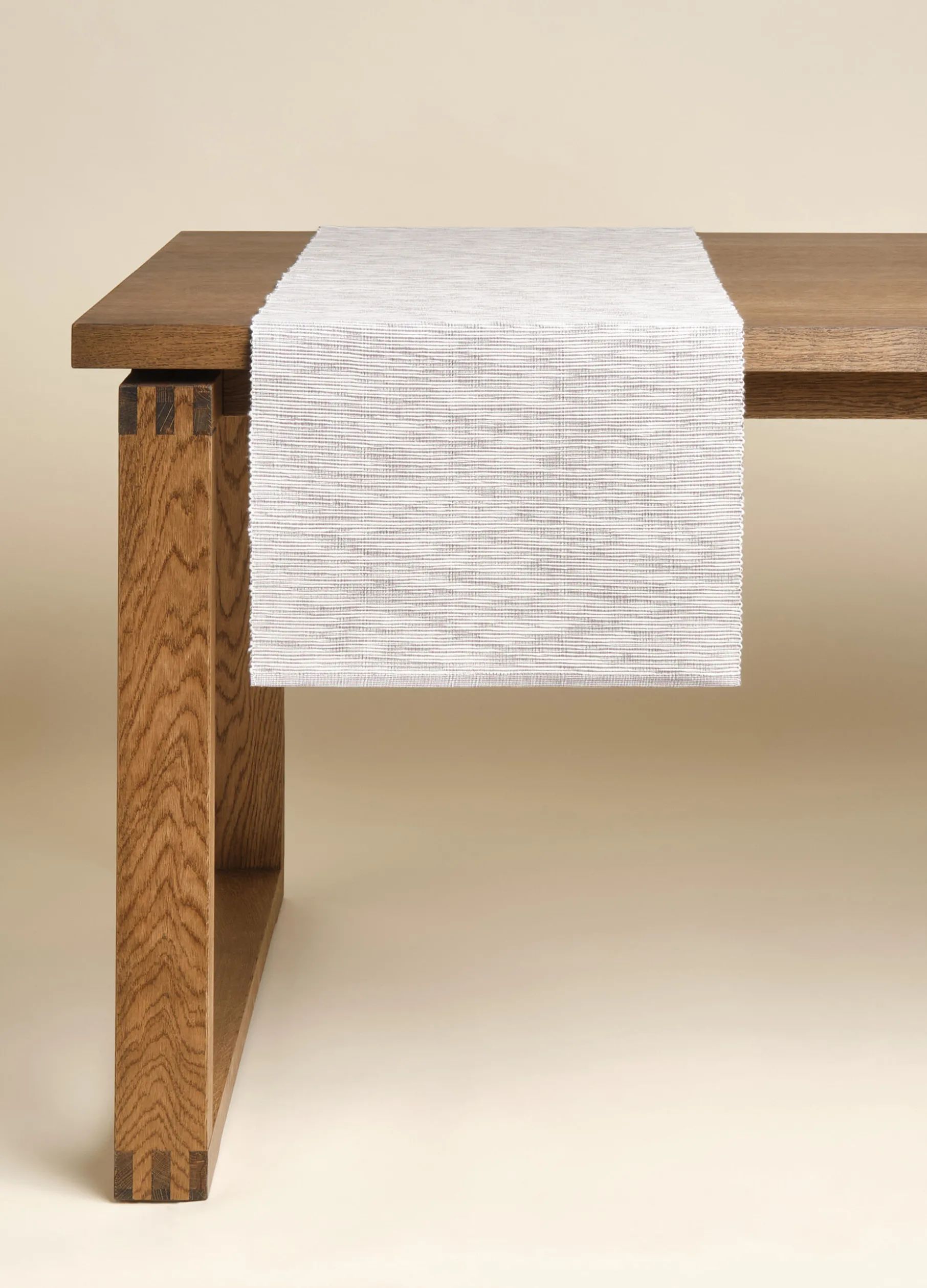 Runner in puro cotone dal look rustico e accogliente. La lavorazione a doppia costina bianca e marrone con effetto mélange.