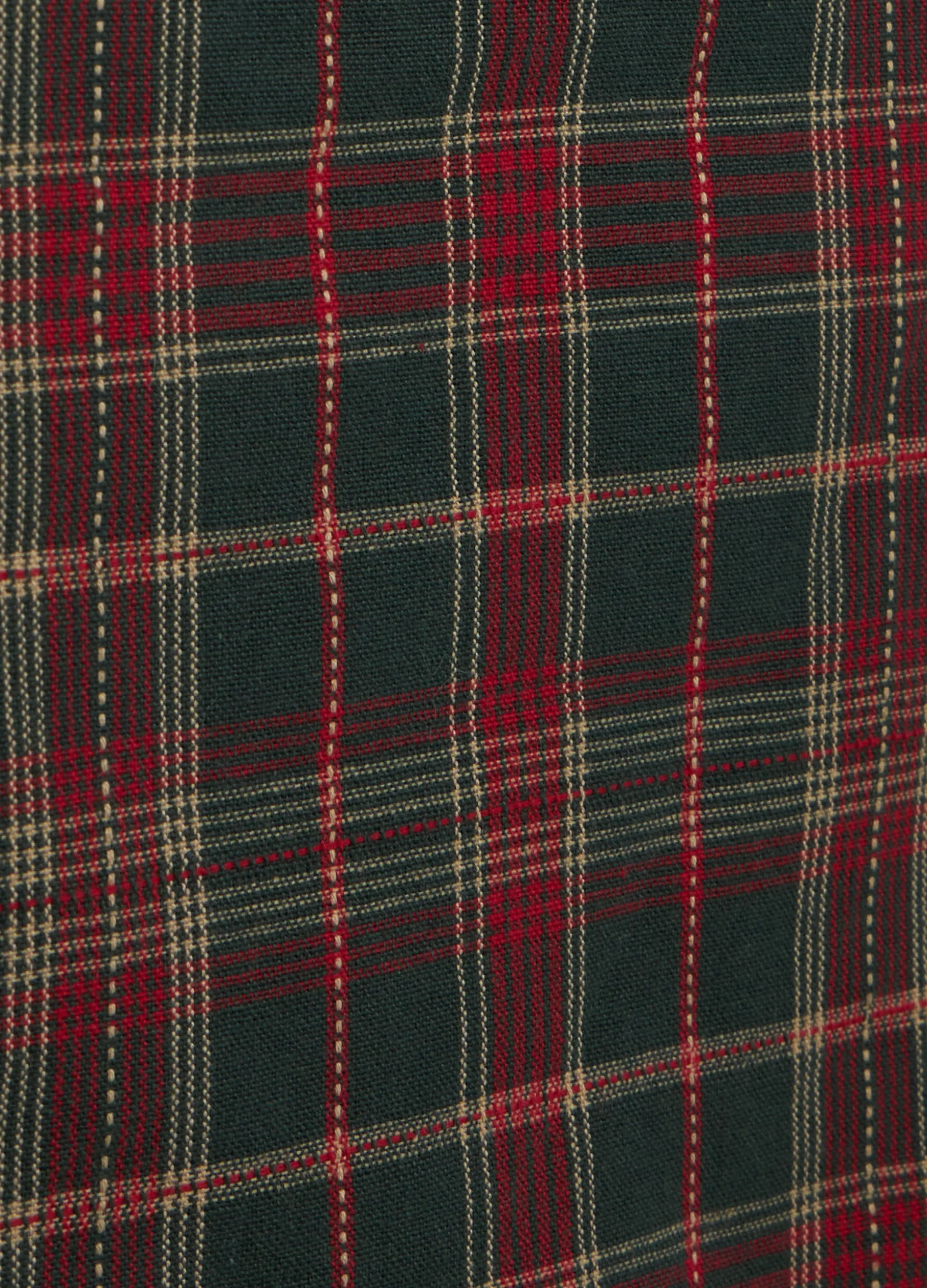 Runner per tavolo rettangolare da sei in puro cotone, caratterizzato dal tradizionale motivo tartan nei toni del verde scuro e del rosso, che gli regala uno stile allegro e festoso. Dimensioni: 140 x 40 cm.