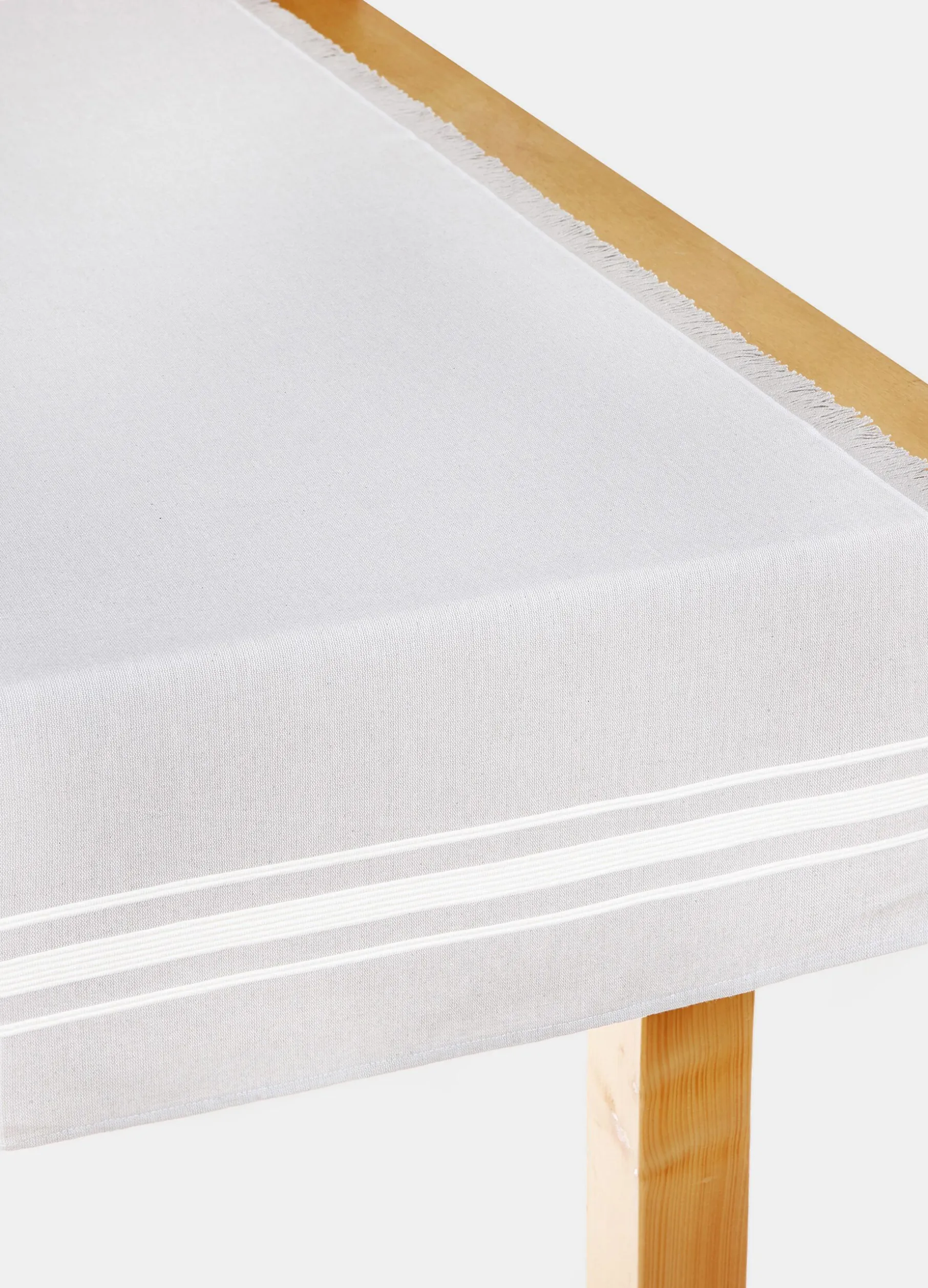 Runner 40x120cm in puro cotone con orlo sfrangiato ai lati e stampa rigata al fondo. Questo prodotto fa parte della collezione “GLI INDISPENSABILI” CROFF.