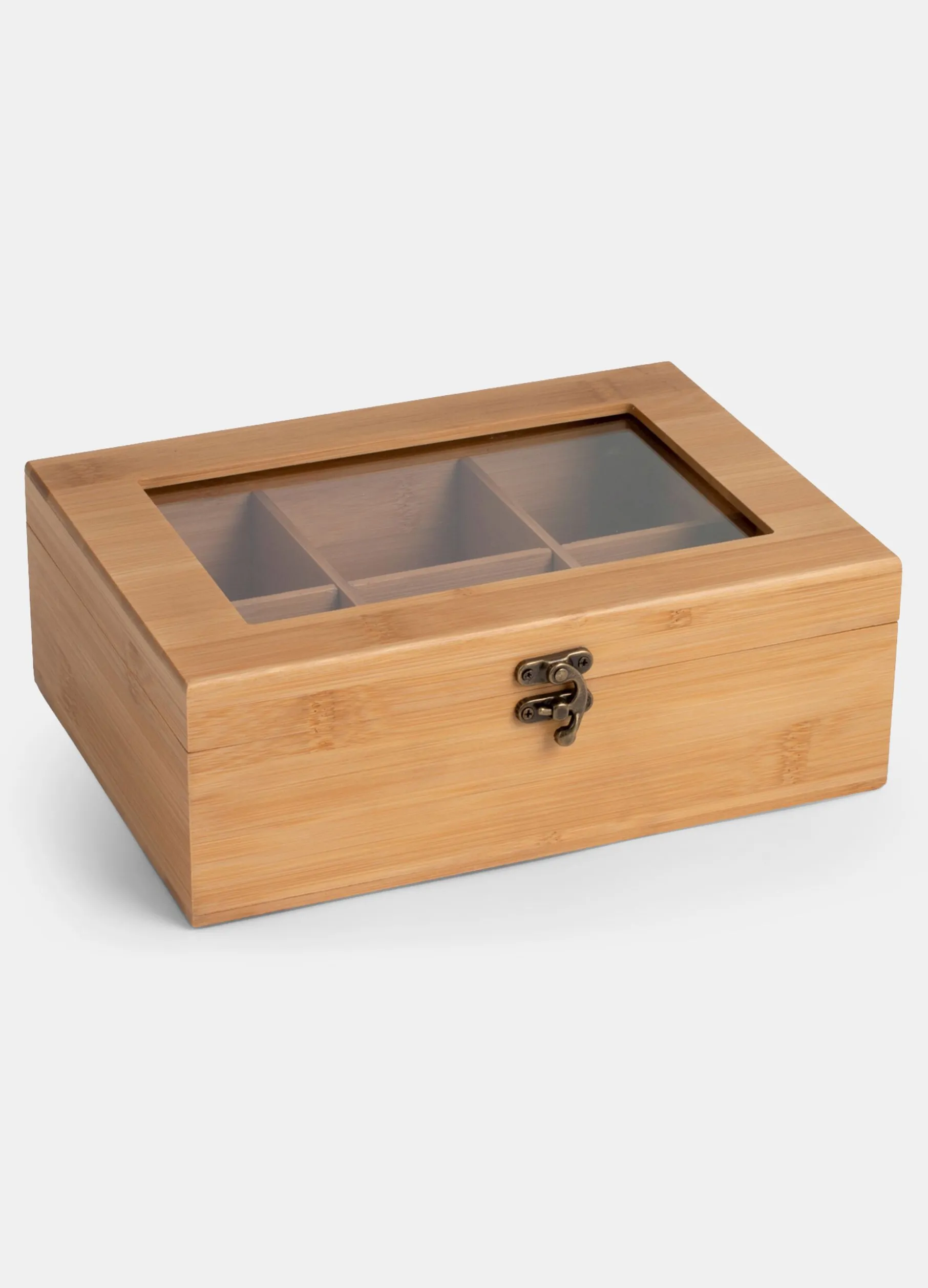 Scatola in Bambù per bustine da tè. Dimensioni 25,5×18,5×9 cm.