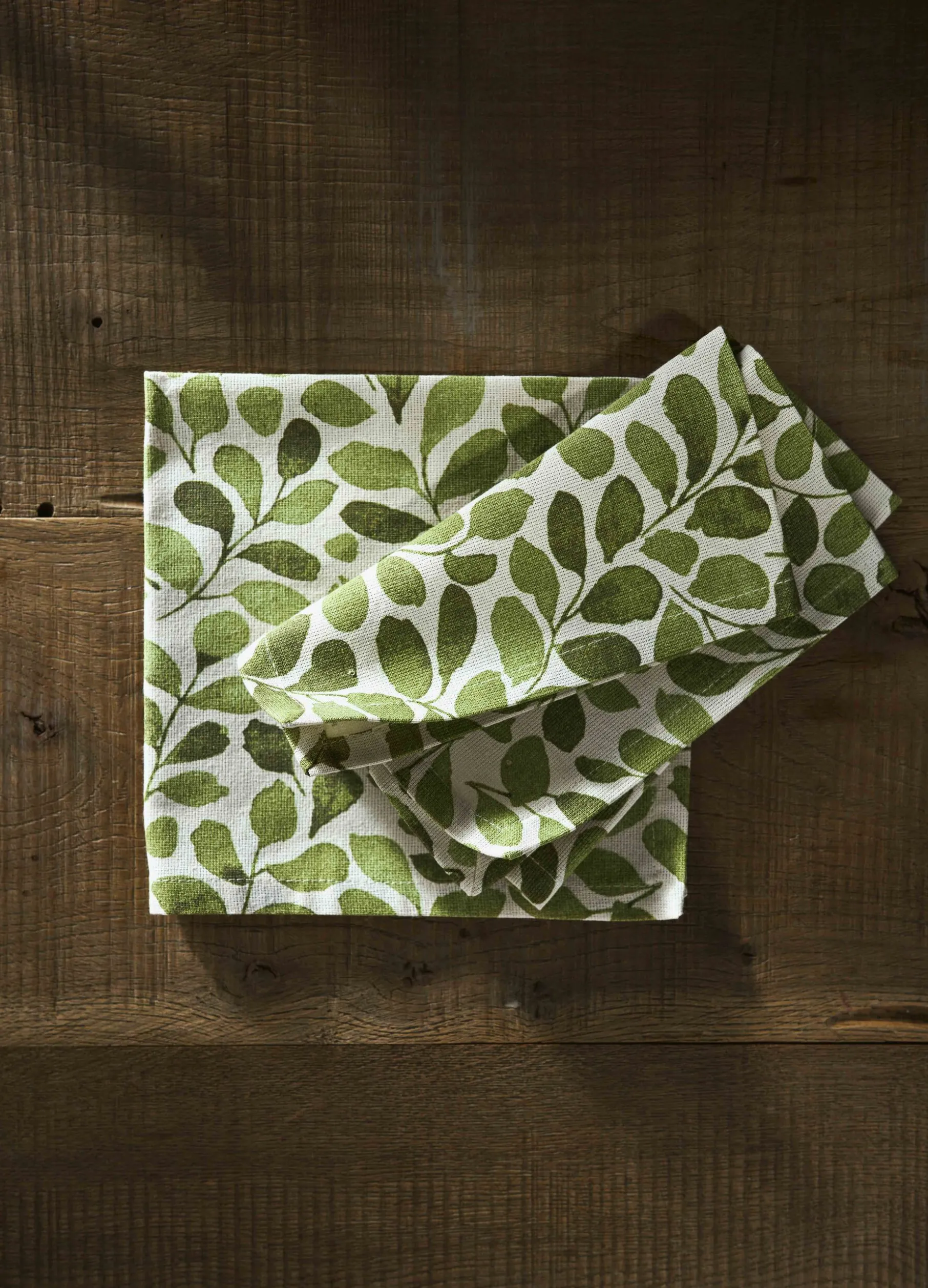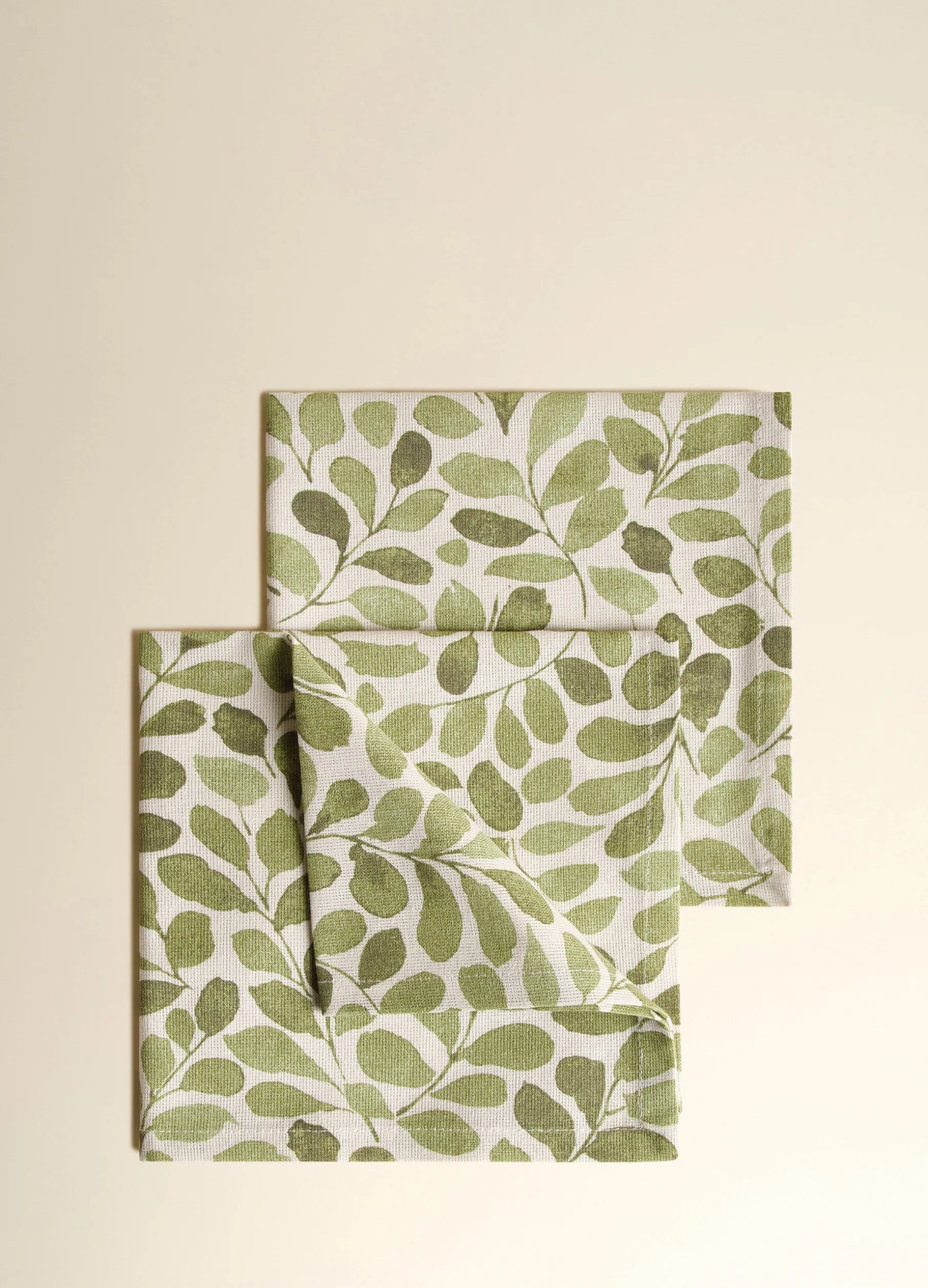 Set 2 tovaglioli in puro cotone biologico con stampa foliage a motivo all over. Dimensioni 42x42cm.
