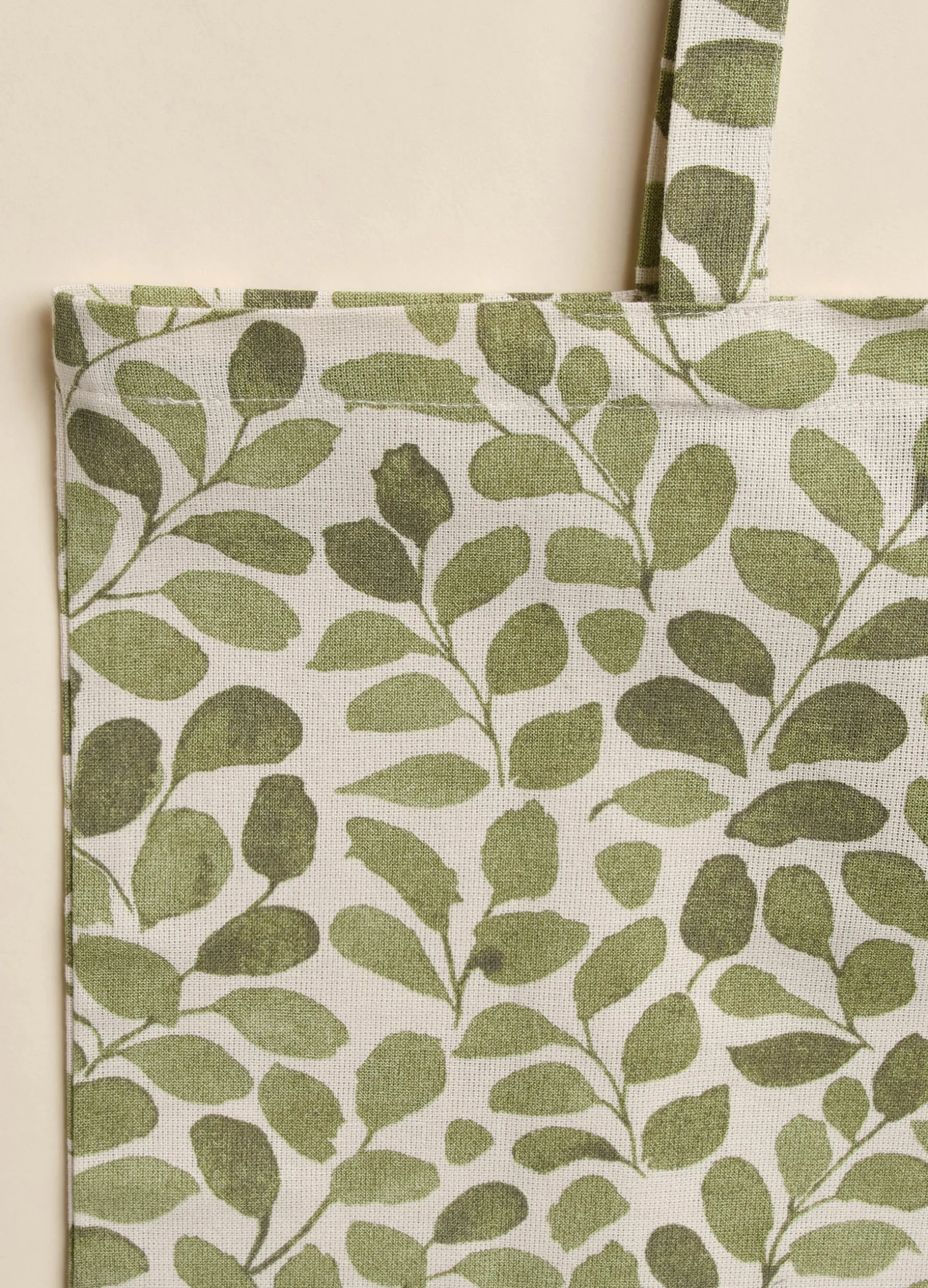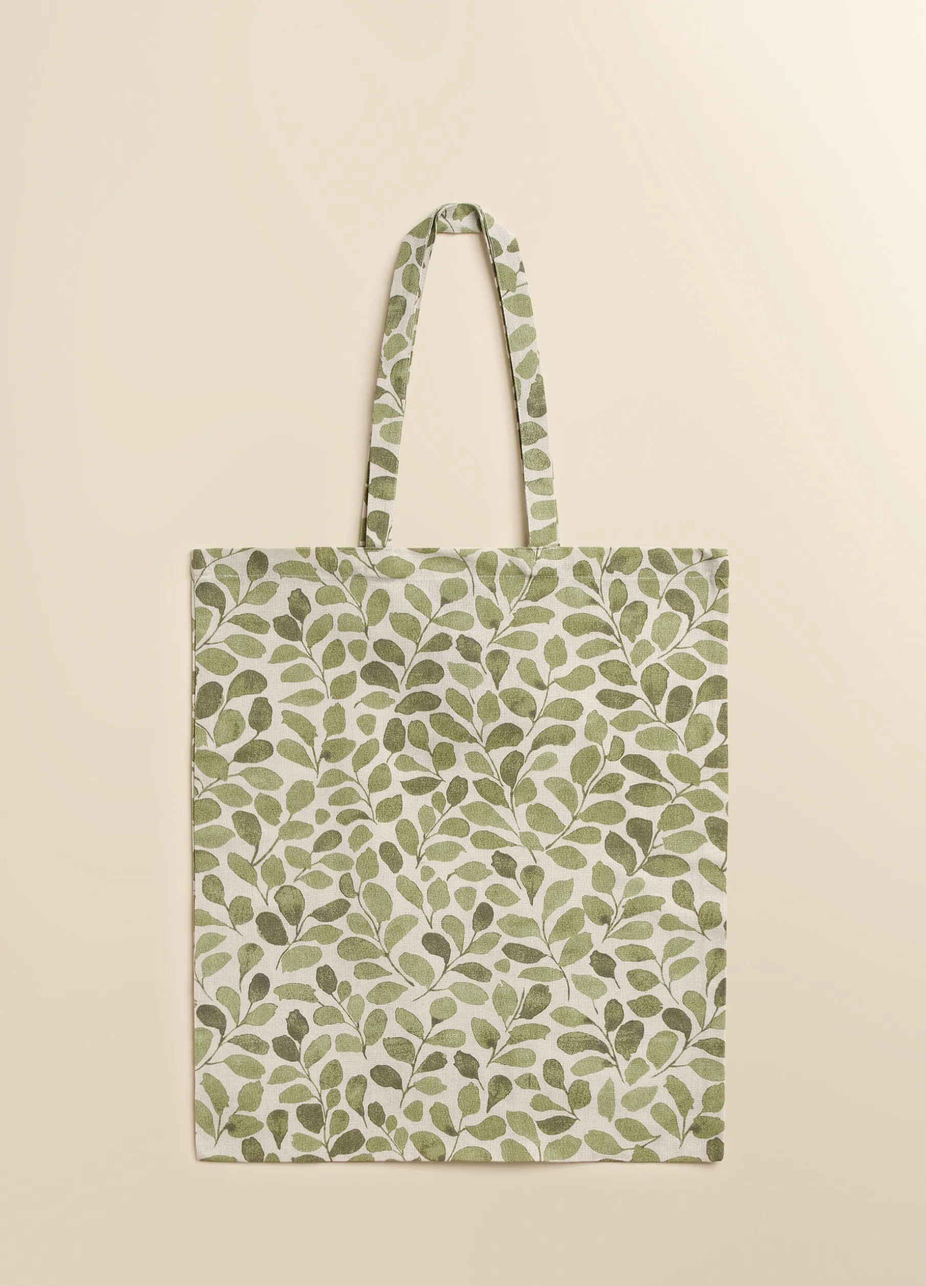 Shopping bag in puro cotone biologico con stampa all over con motivo foliage. Dimensioni 49x42cm.