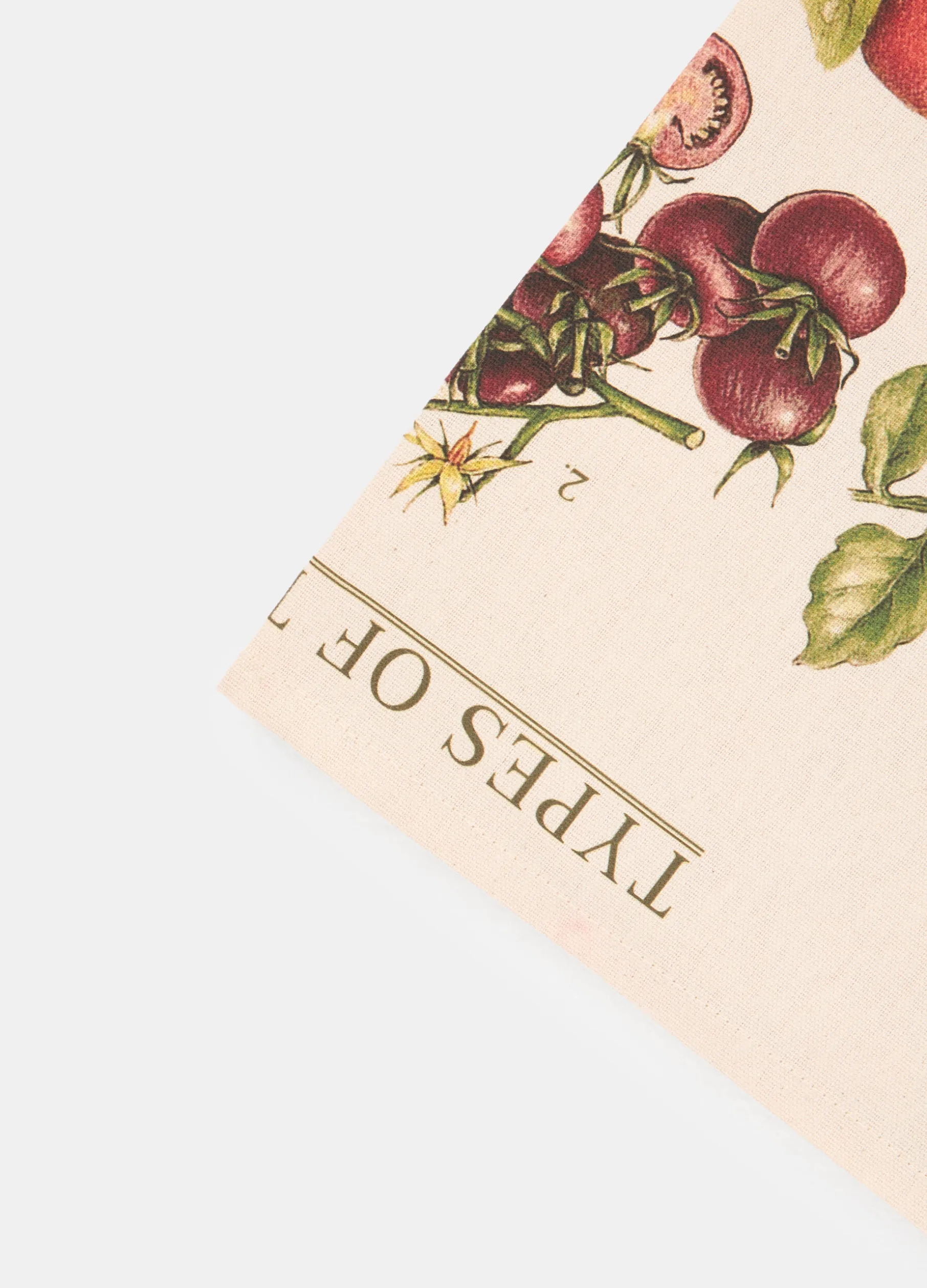 Strofinaccio rettangolare da cucina realizzato in cotone bianco avorio, la base perfetta per la stampa digitale che raffigura un colorato assortimento di varie tipologie di pomodori. Dimensioni: 70 x 50 cm.
