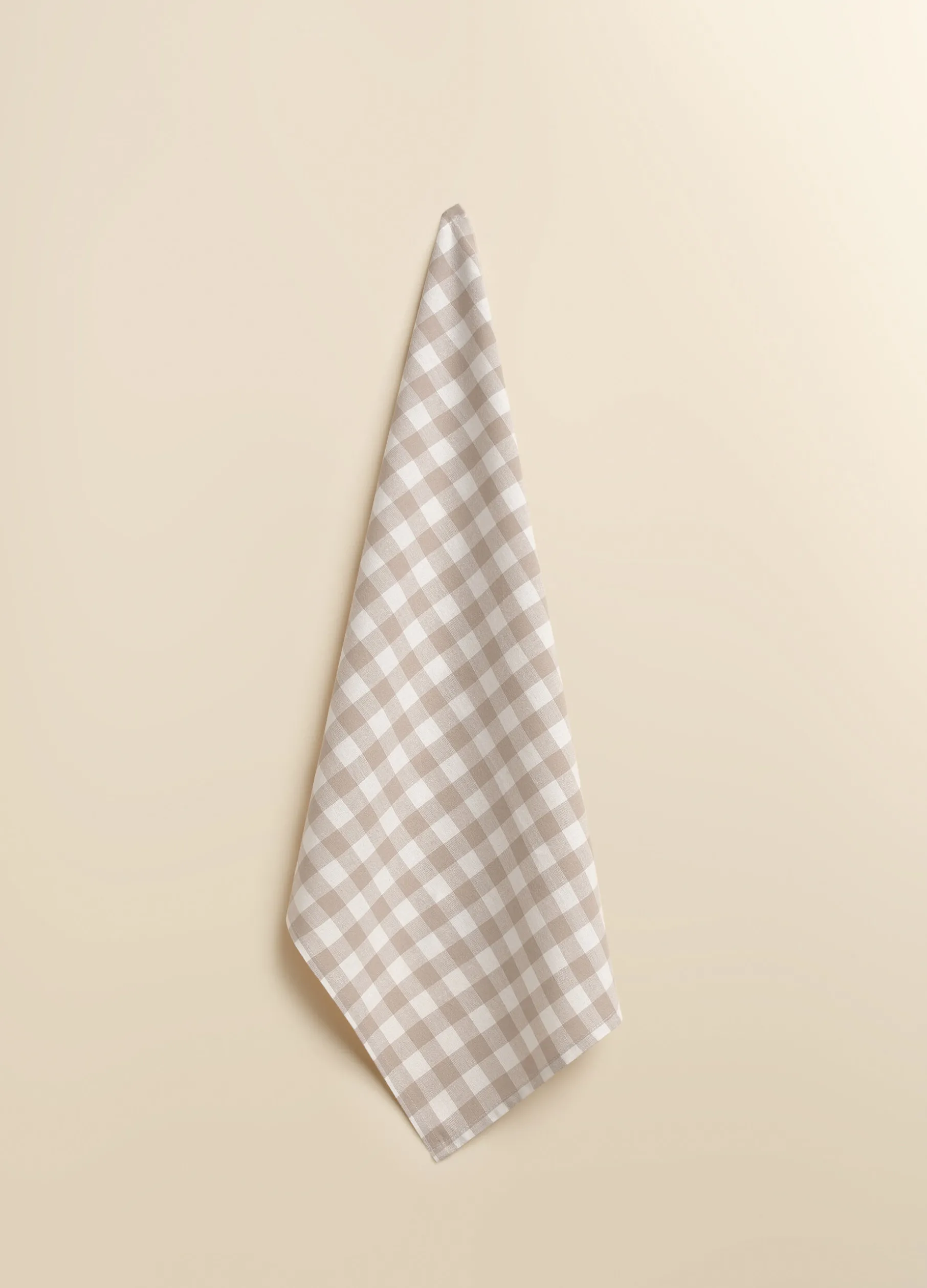 Strofinaccio rettangolare da cucina in filato di cotone, robusto e assorbente, arricchito da un motivo a quadretti bianchi e beige dallo stile rustico e accogliente.