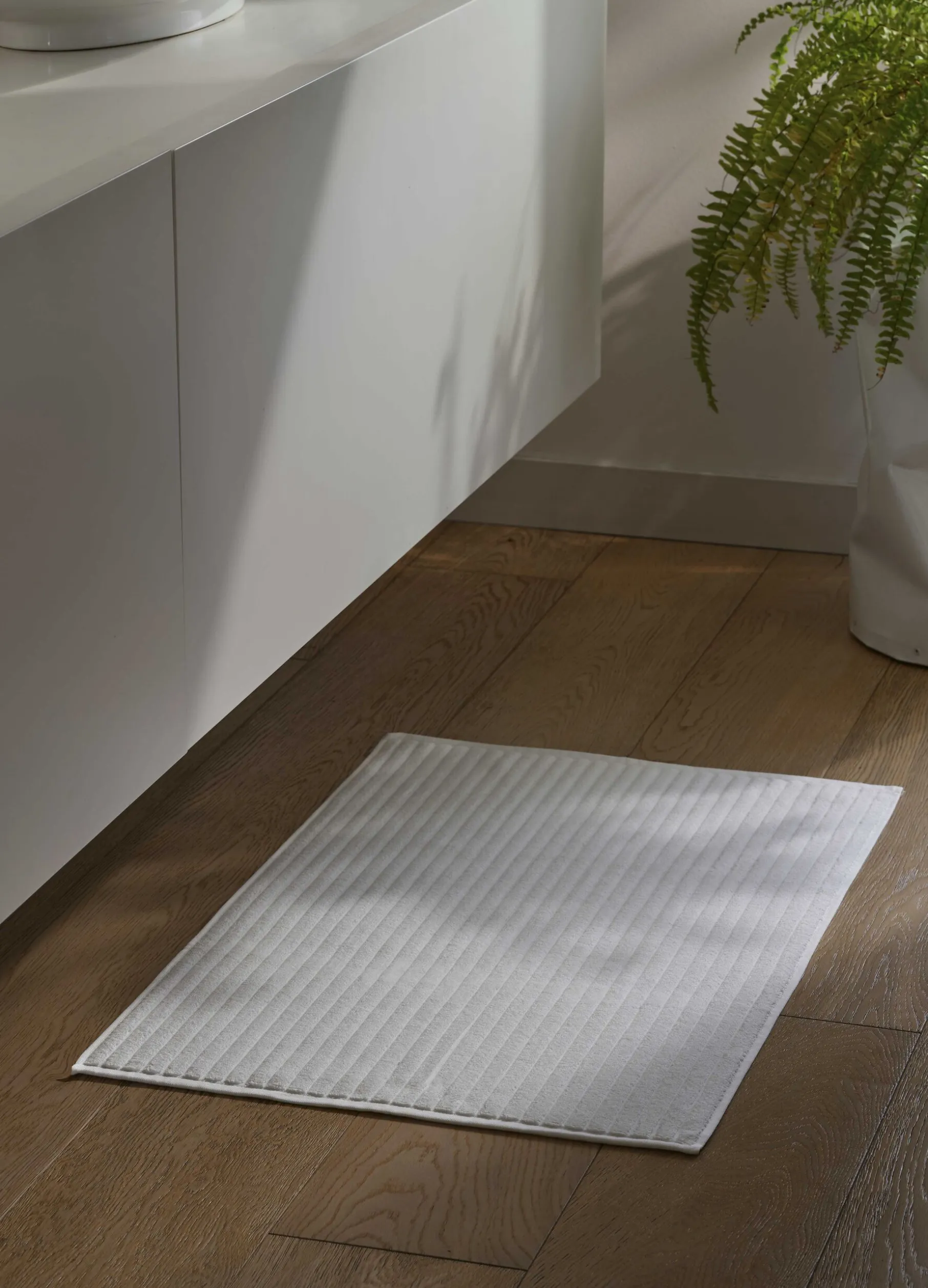Tappeto in puro cotone con lavorazione jacquard a righe. Made in Portugal. Dimensioni 80×50 cm.