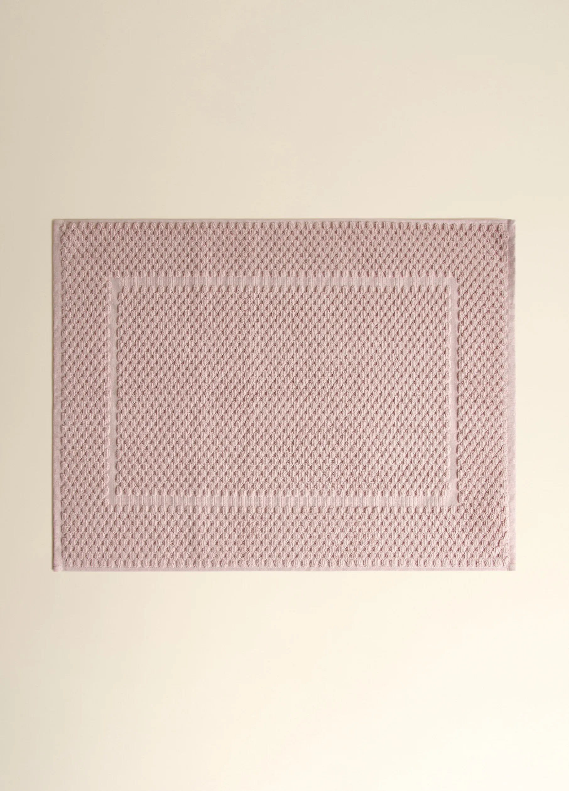Tappeto in spugna di puro cotone con lavorazione jacquard. Dimensioni 70×50 cm.