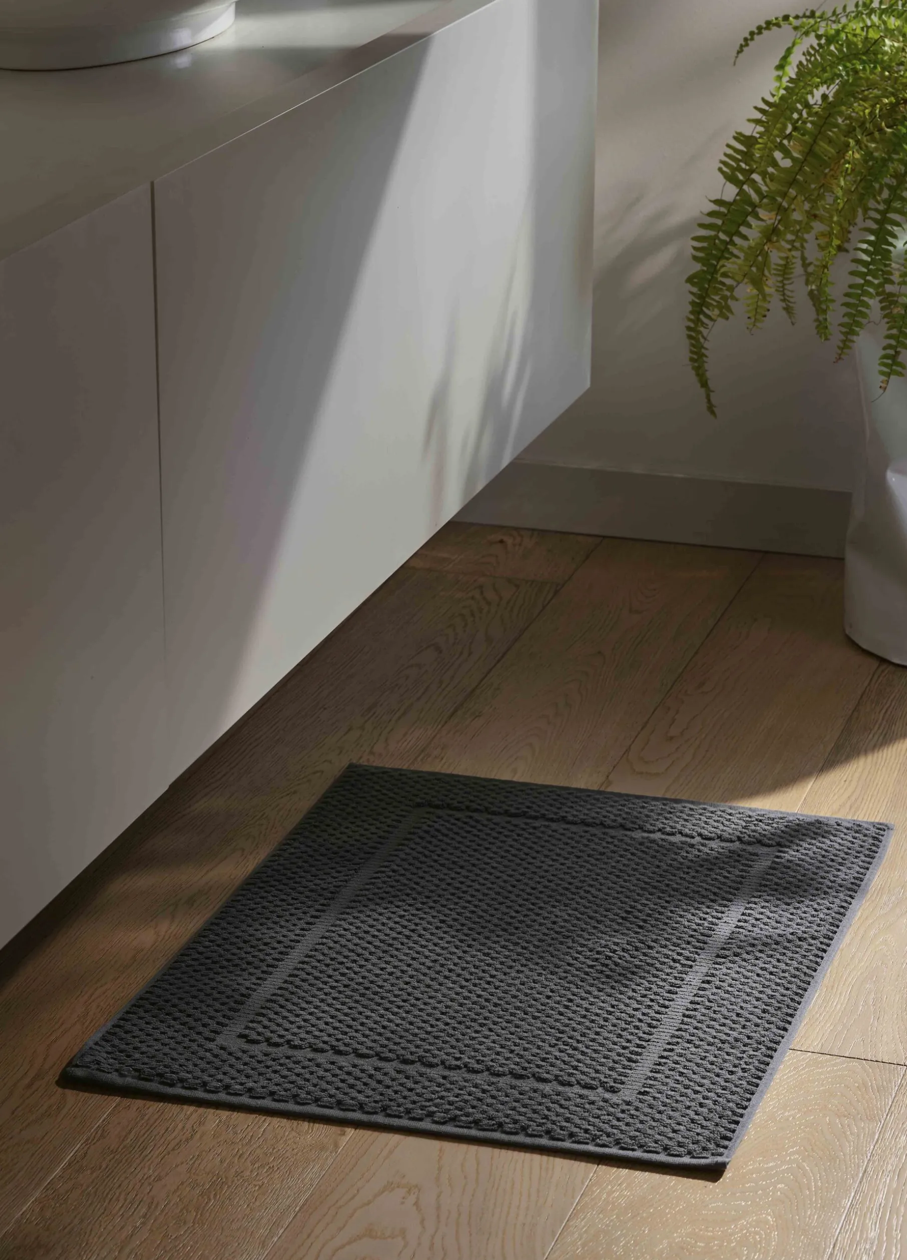 Tappeto in spugna di puro cotone con lavorazione jacquard. Dimensioni 70×50 cm.