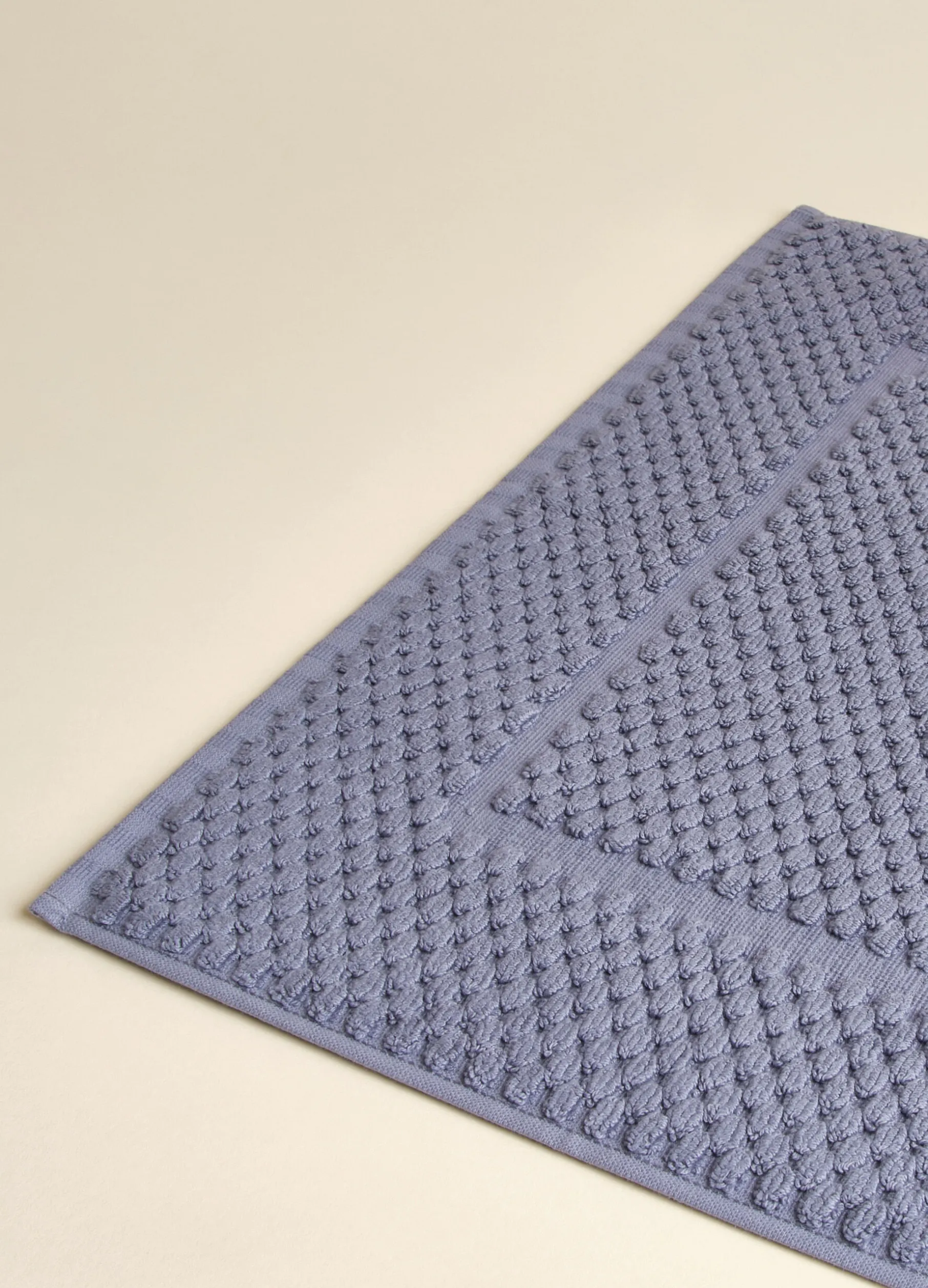 Tappeto in spugna di puro cotone con lavorazione jacquard. Dimensioni 70×50 cm.