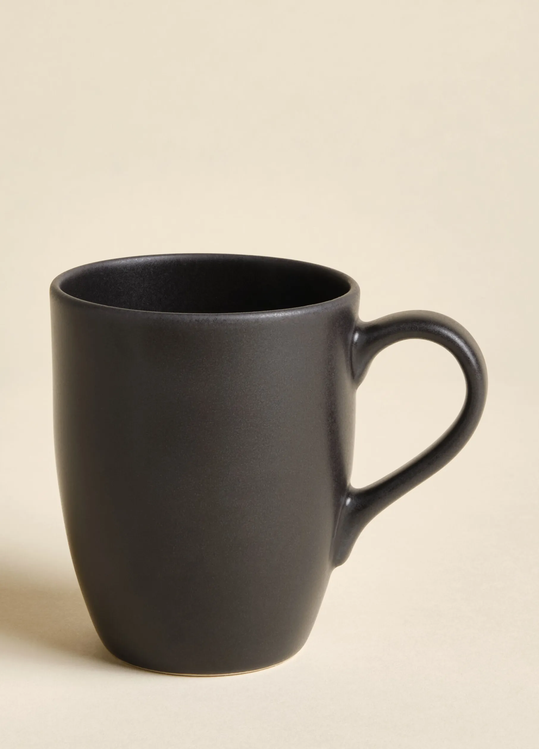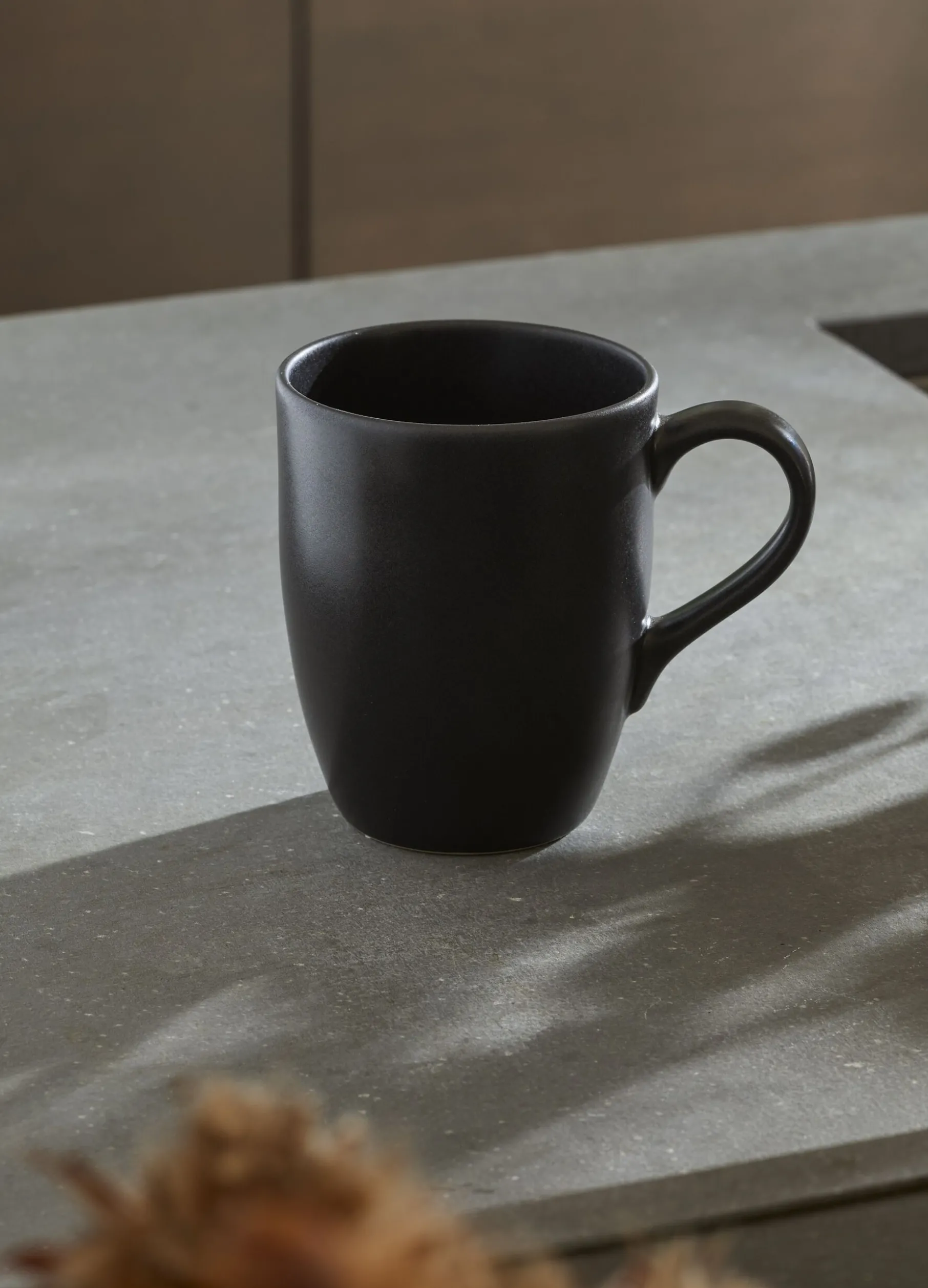 Tazza per colazione in gres con manico, tinta unita. Altezza 10,5 cm.