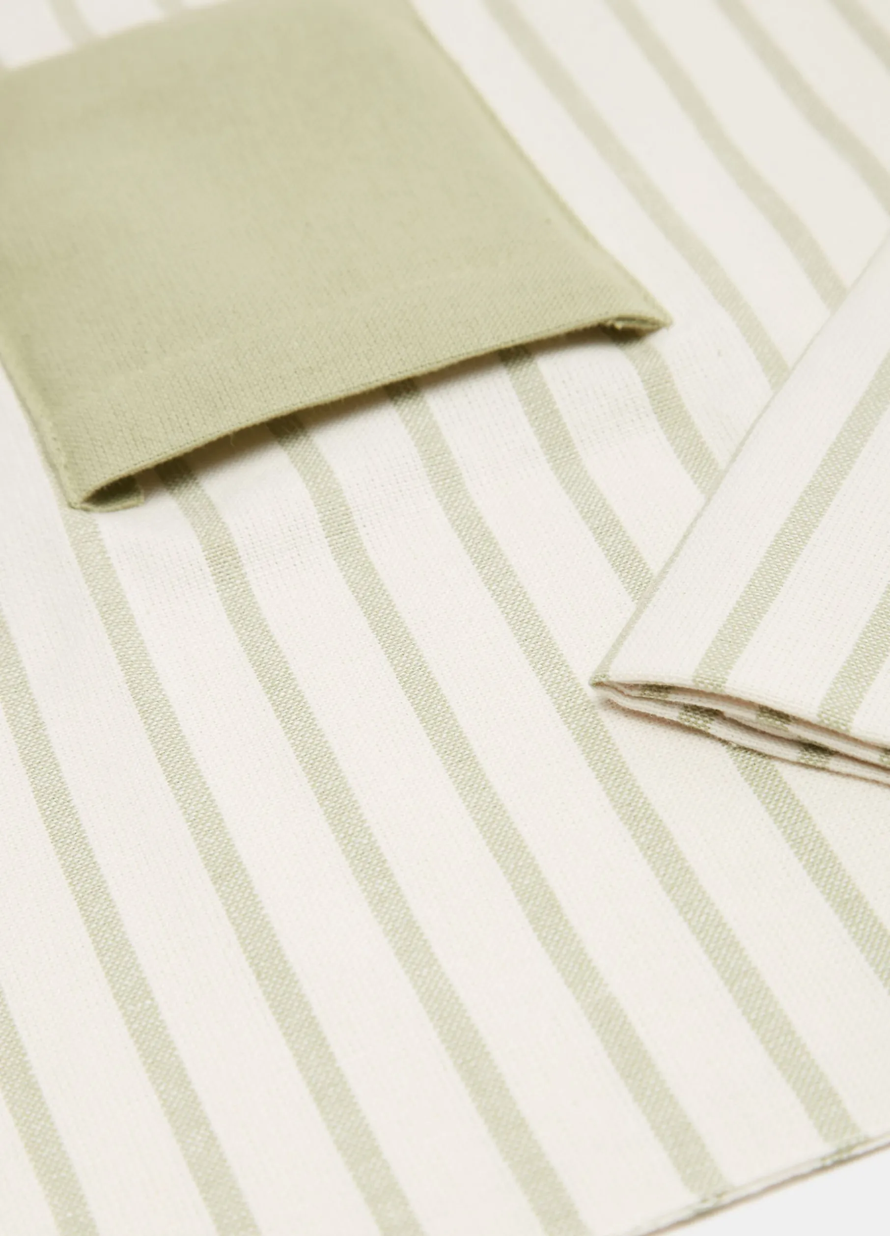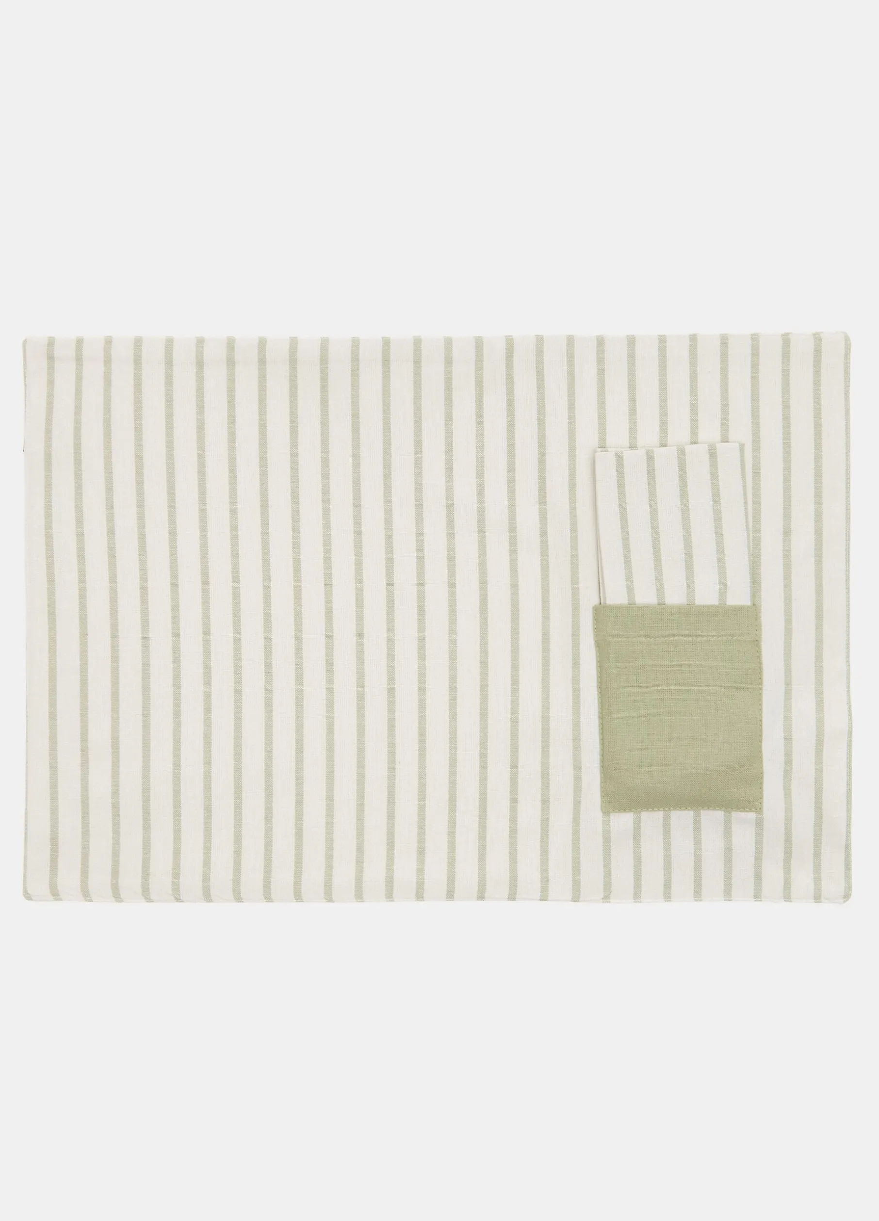 Tovaglietta 50×35 cm bio di puro cotone con taschino per posate sul fronte. Forma rettangolare. Stampa a righe all over. Linea ECO by Croff.