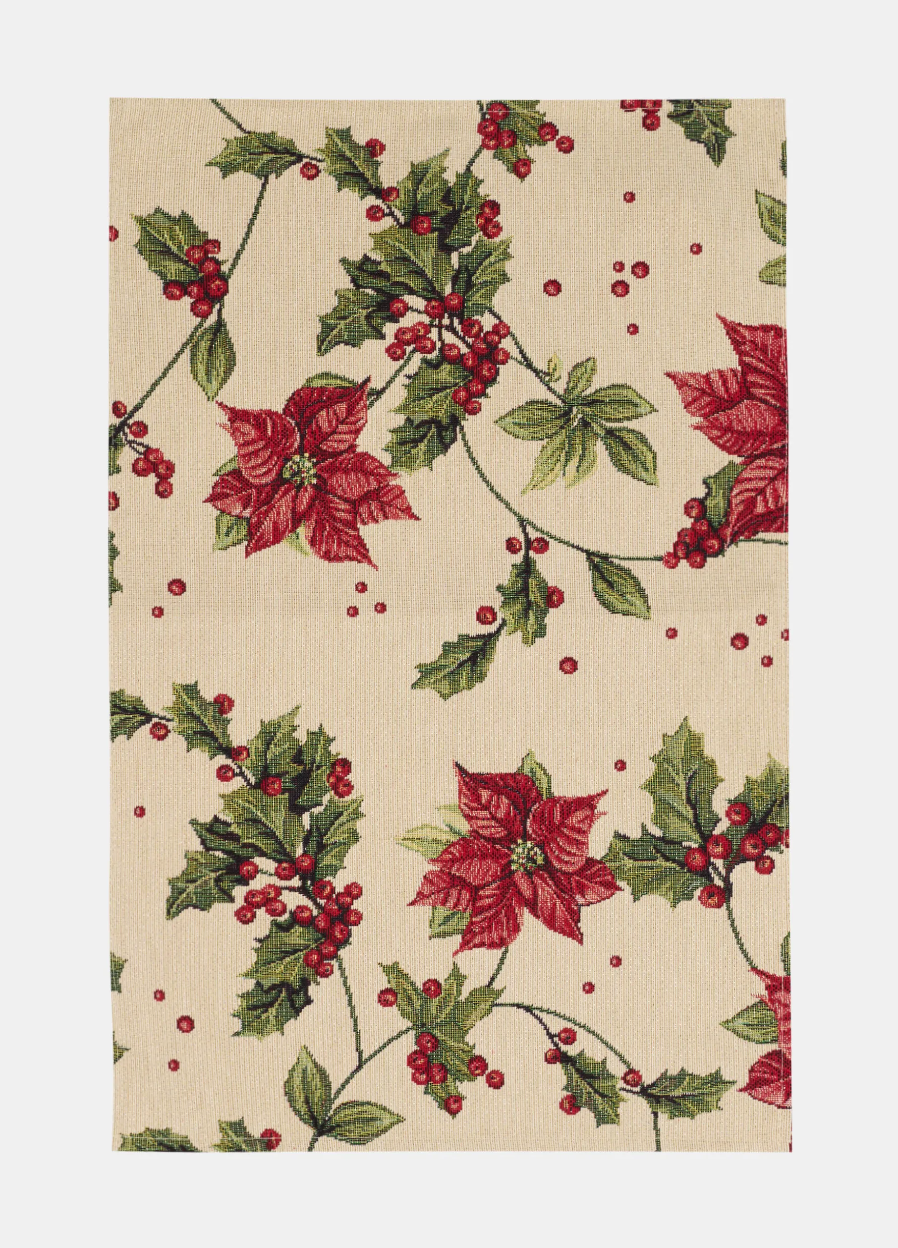 Tovaglietta americana di forma rettangolare in misto cotone caratterizzato da una particolare lavorazione jacquard che ricorda il fascino rustico degli arazzi antichi, con sfondo beige e motivo floreale a contrasto. Dimensioni: 50 x 35 cm.
