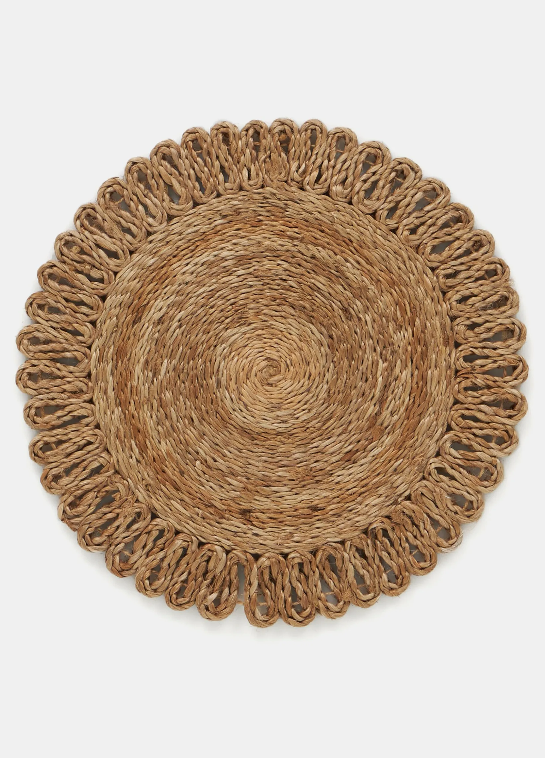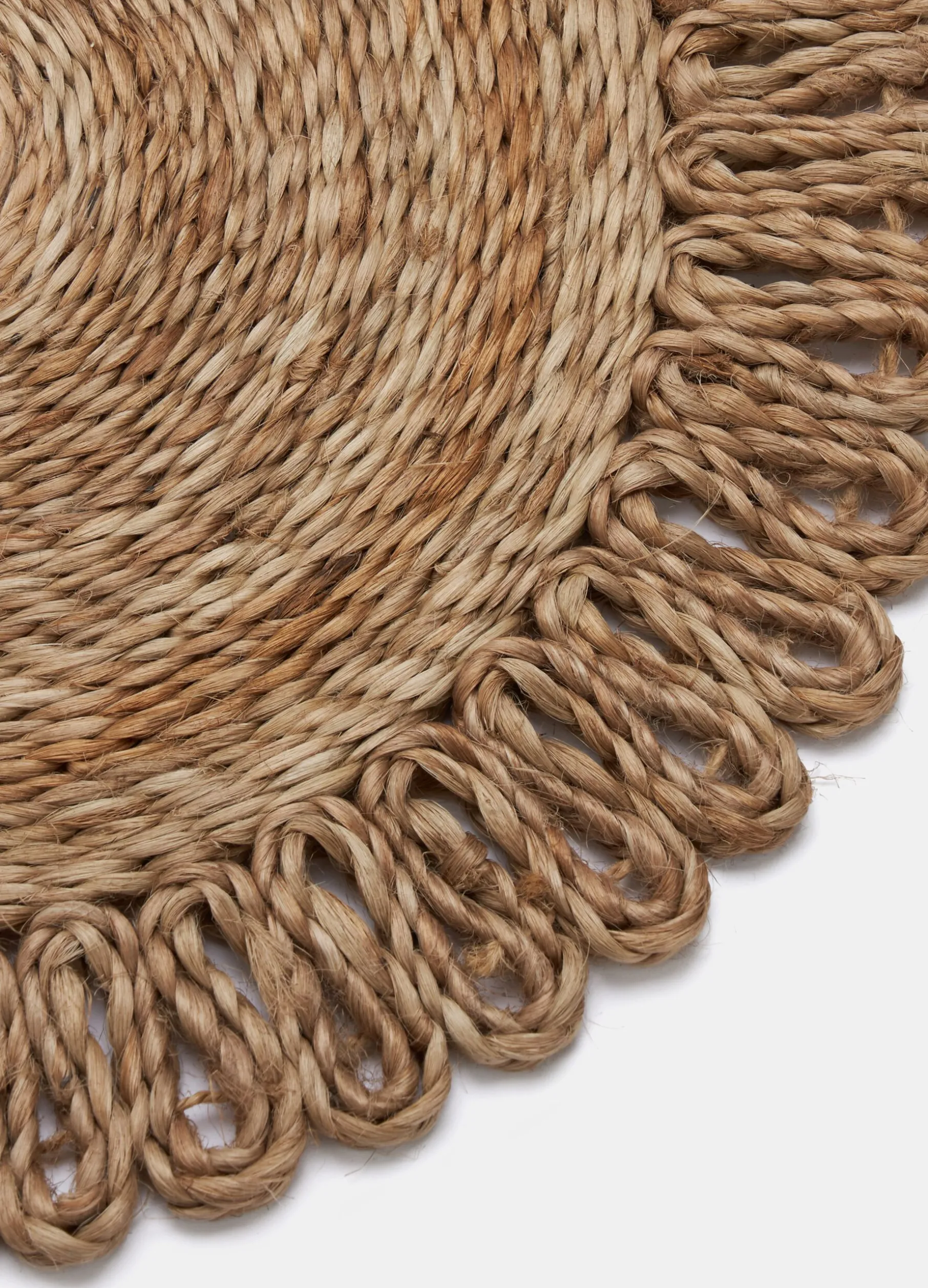 Tovaglietta rotonda in juta lavorata. Diametro 35cm.