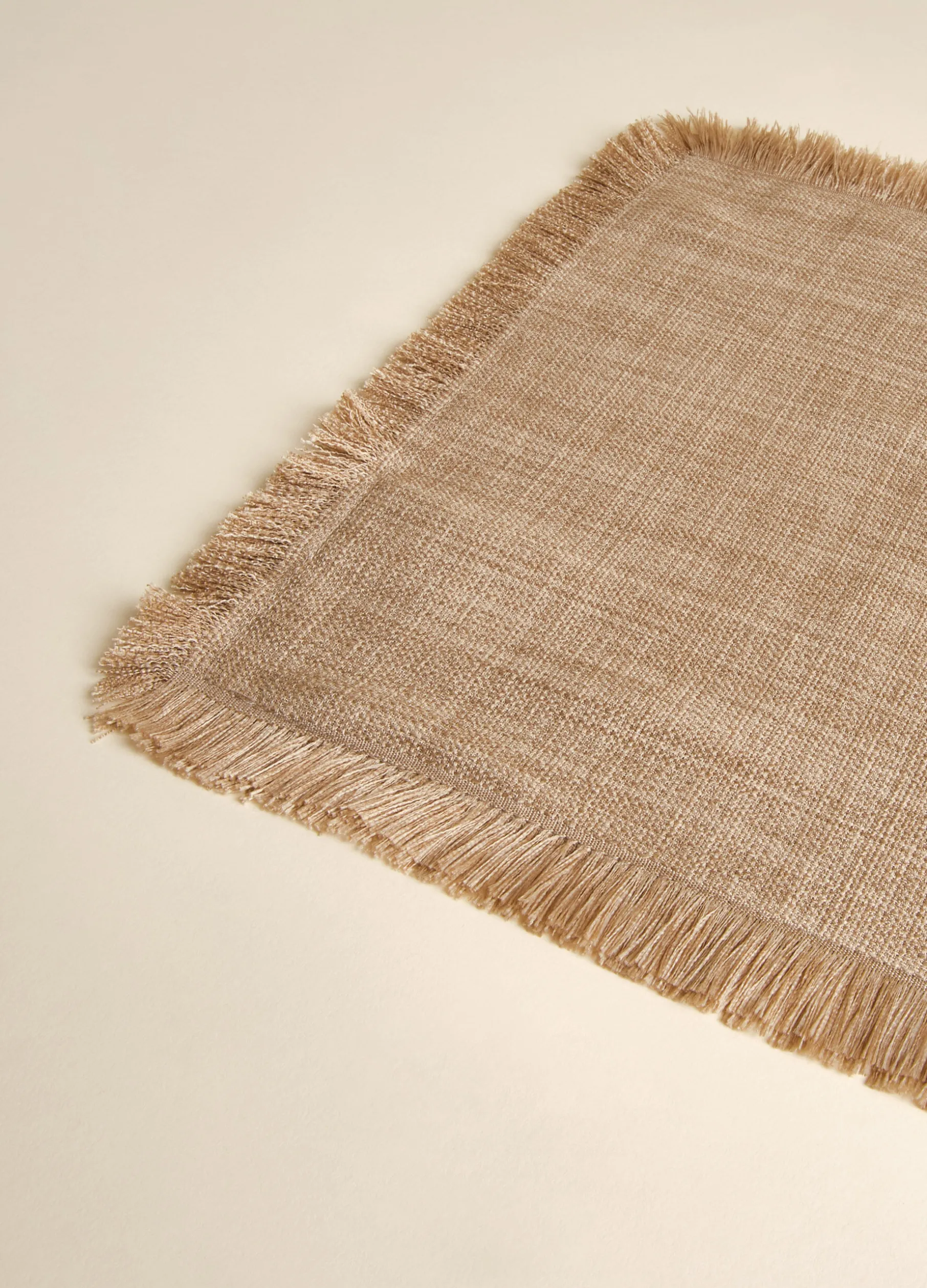 Tovaglietta sfrangiata 45×30 cm. Tinta unita. Effetto mélange. Tessuto idrorepellente e antimacchia.