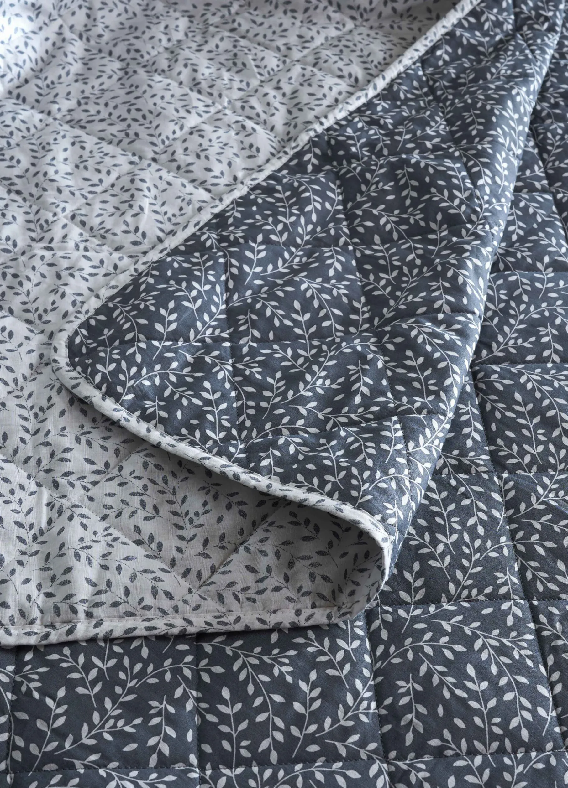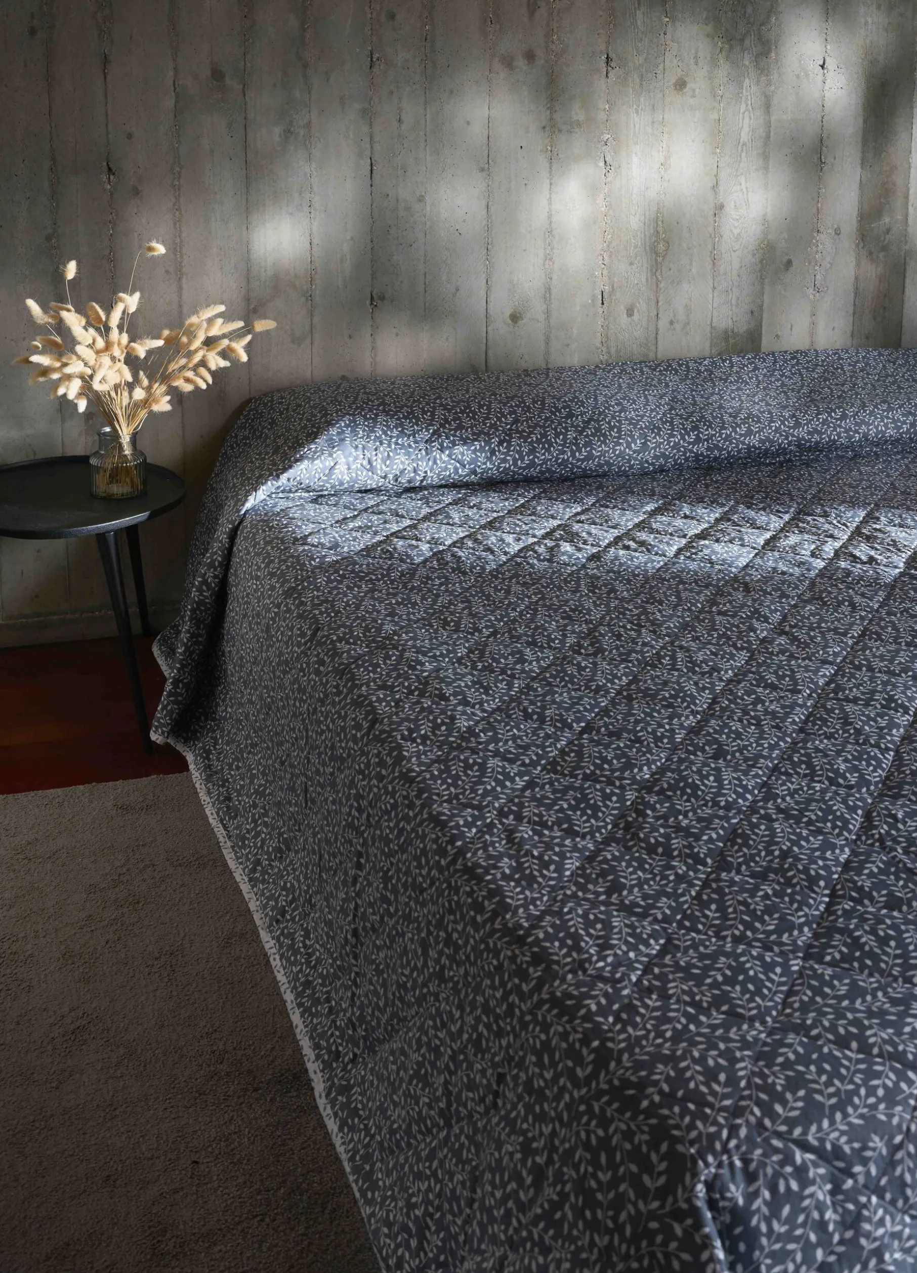 Trapunta 1 piazza e mezza con stampa foliage a motivo all over. Dimensioni 260x240cm.