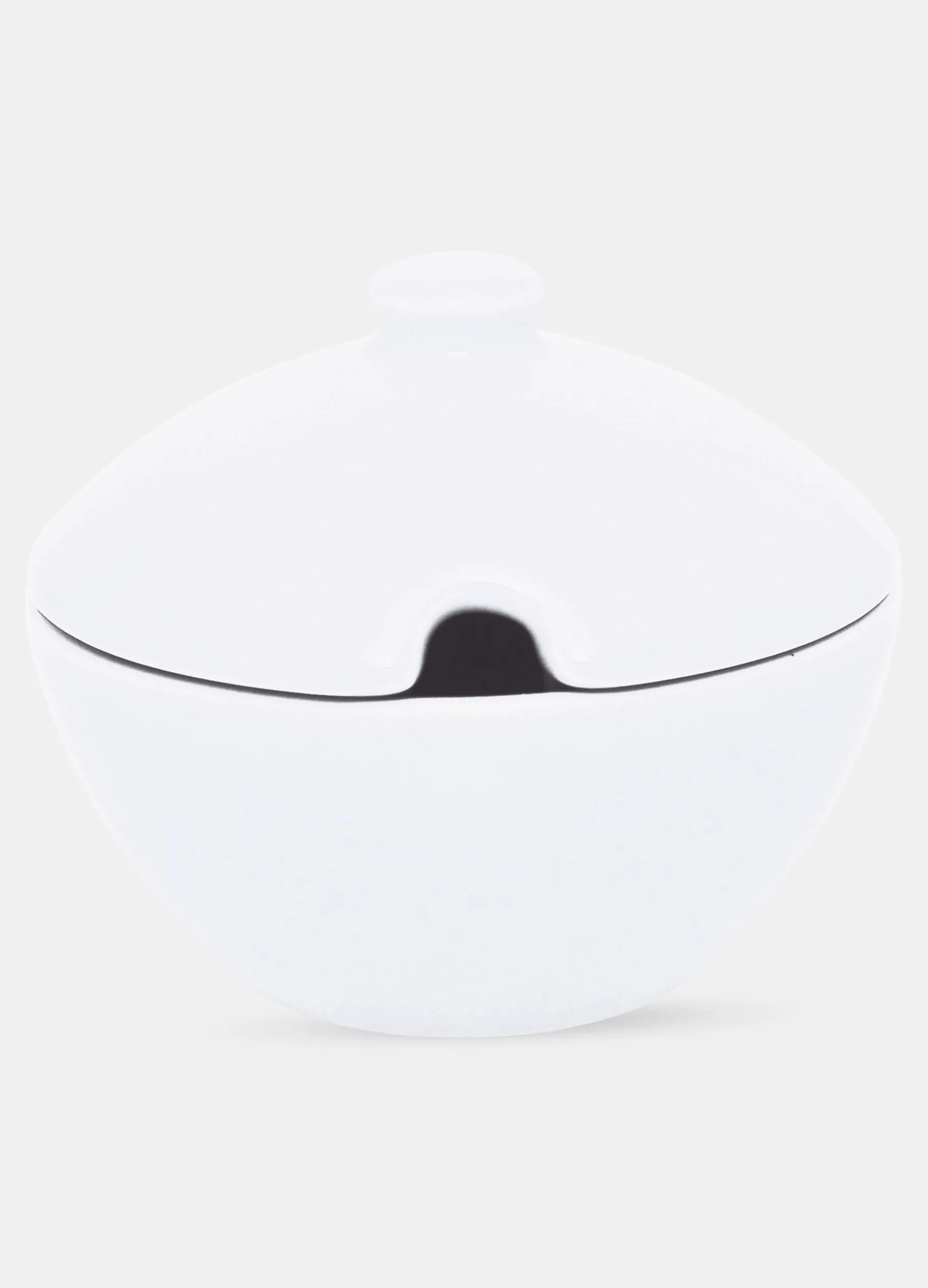 Zuccheriera in porcellana con coperchio. Tinta unita. Dimensioni 11×9.5×11 cm.