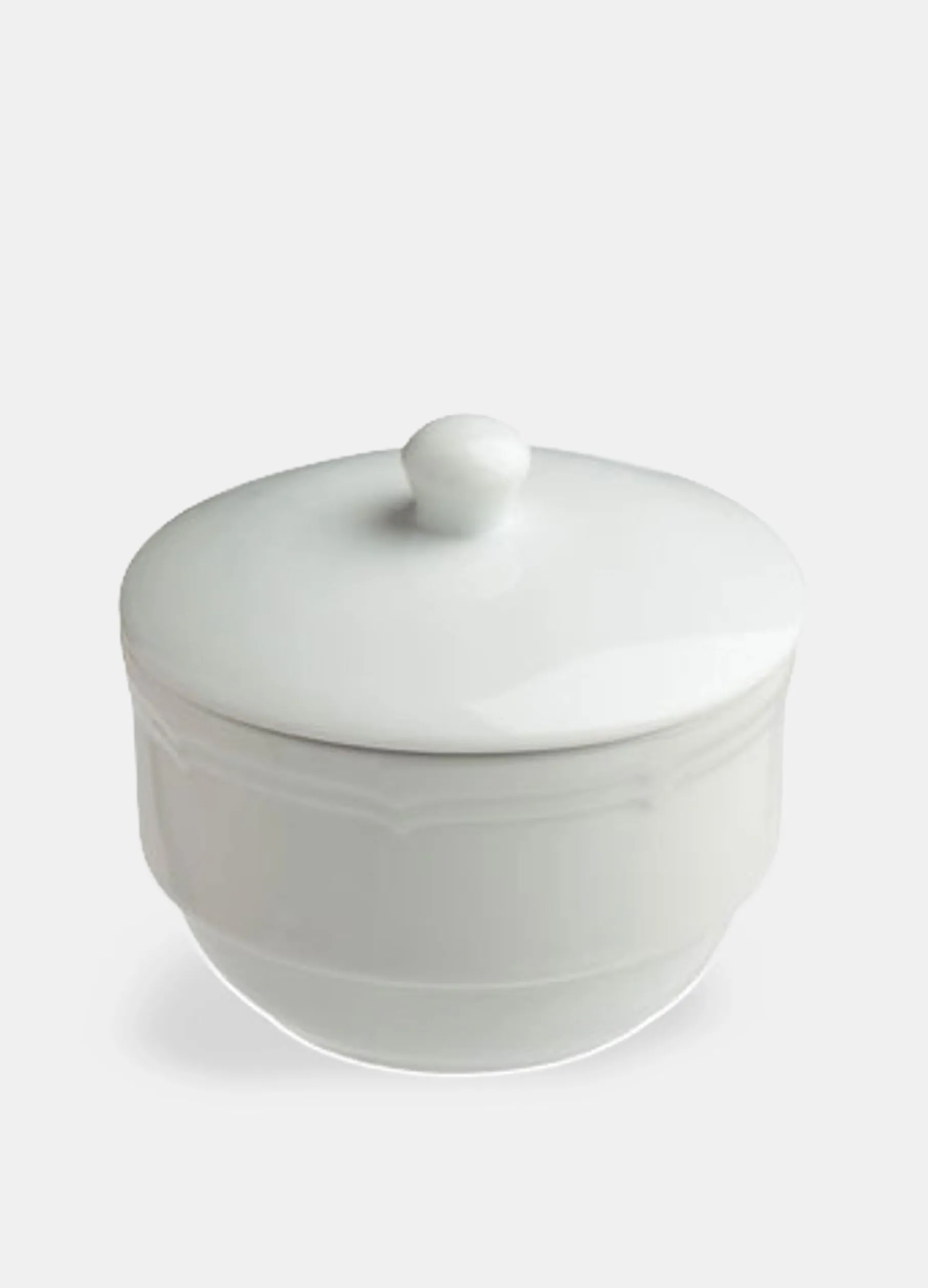Zuccheriera Ouverture bianca in porcellana con coperchio di Tognana Porcellane SPA. Diametro 10 cm.